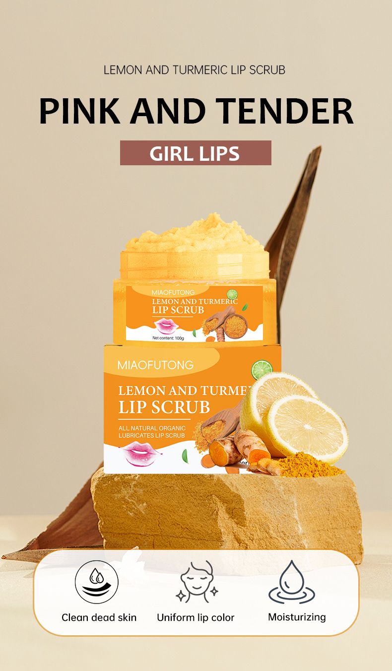 クロスボーダーリップスクラブ ターメリックレモンリップスクラブ ディープクレンジング、角質除去、美白、保湿、若返り