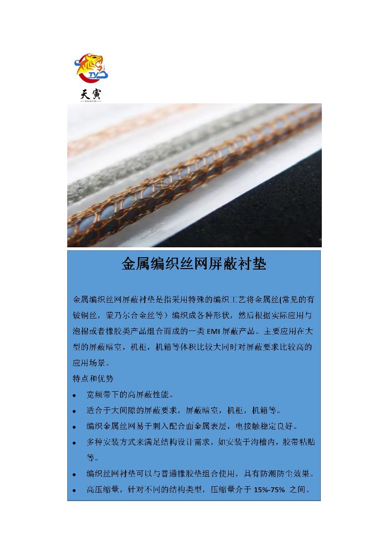両翼錫メッキ銅被覆鋼電磁シールドメッシュライナー
