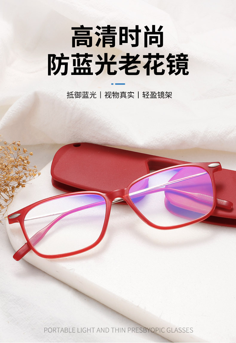 ブルーライトカット携帯用高精細男女兼用折りたたみ伸縮脚卸売老眼鏡キーホルダー老眼鏡目の保護