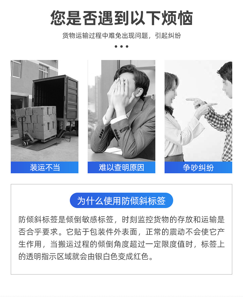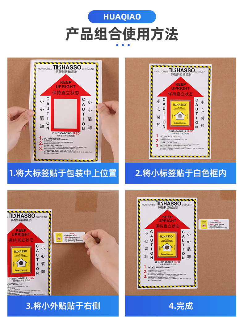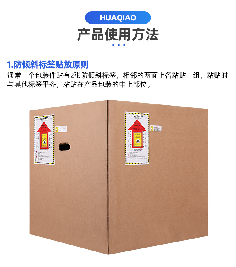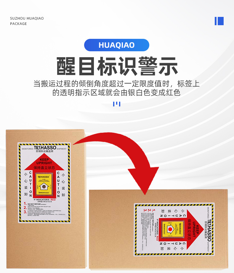 傾斜防止ラベル(中国語・英語)単一角度傾斜防止・衝撃防止表示物流安全輸送監視ラベル