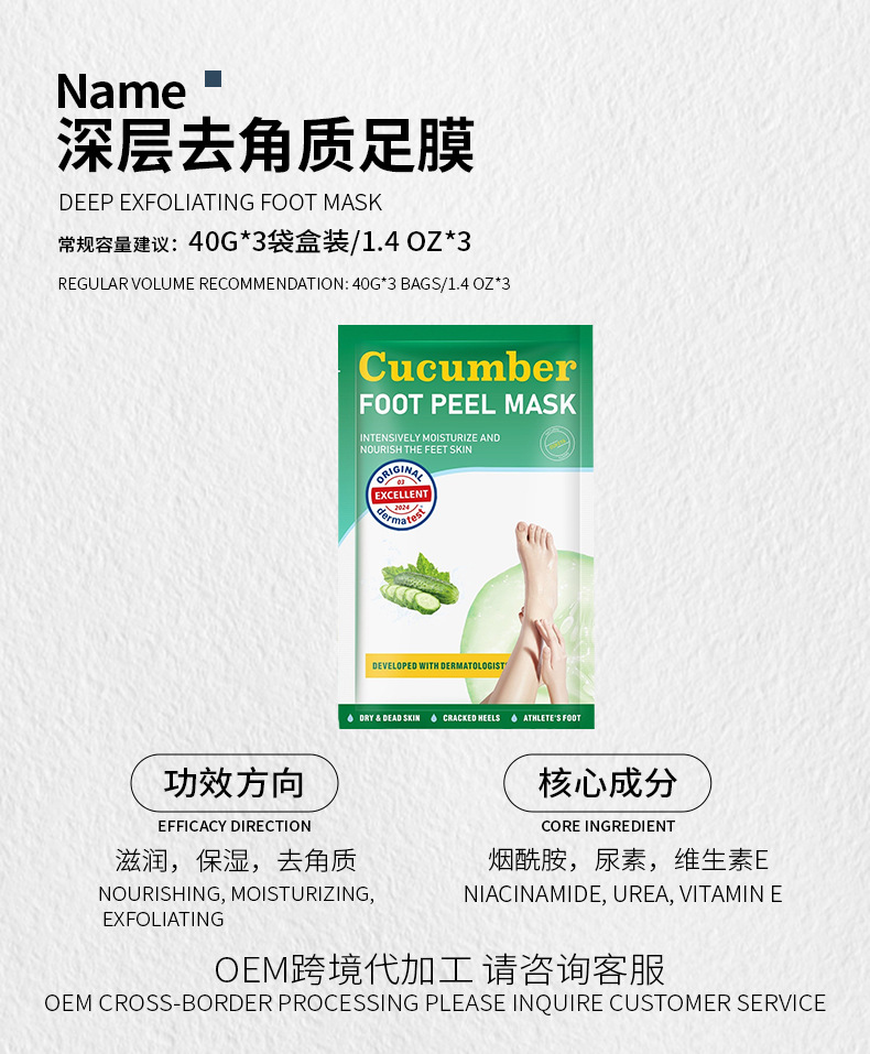 【OEM越境100%ディープピーリングフットマスク】角質除去、かかとひび割れフットマスク、OEM加工