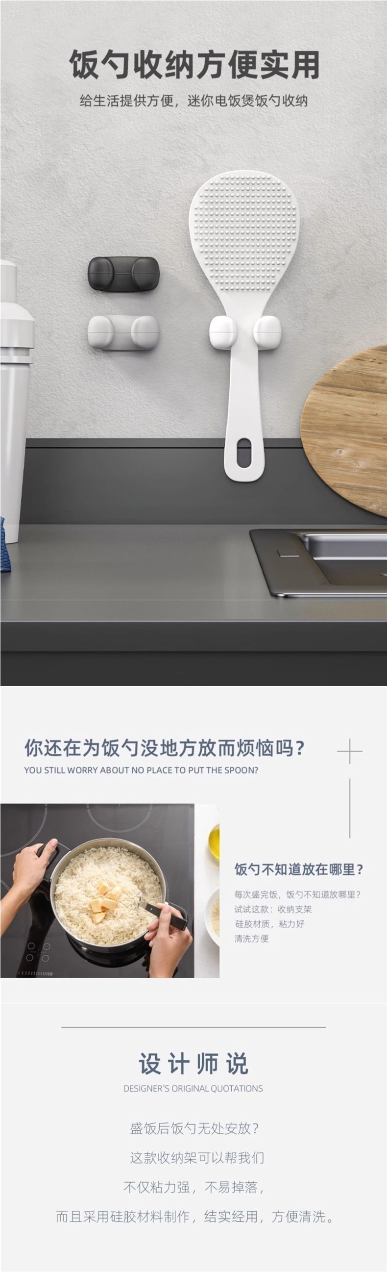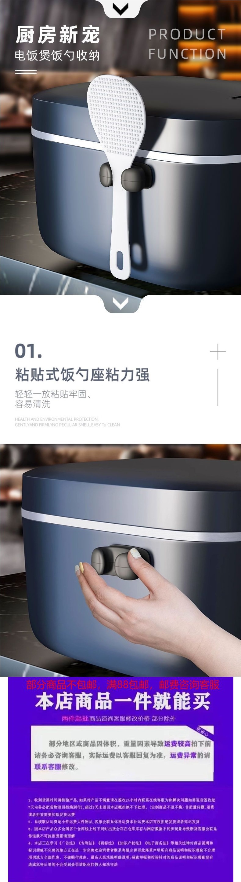 炊飯器アクセサリーしゃもじ固定粘着キッチン収納フッククリップ収納ラックキッチンプラスチック