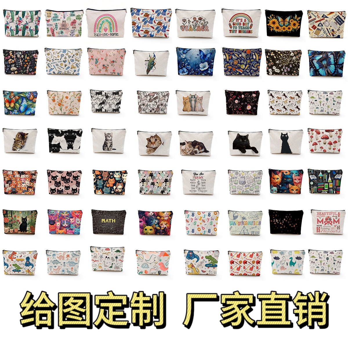 クロスボーダー化粧品バッグ収納袋猫と犬の動物柄プリント旅行ポータブルレディースクラッチバッグ多機能トイレタリー