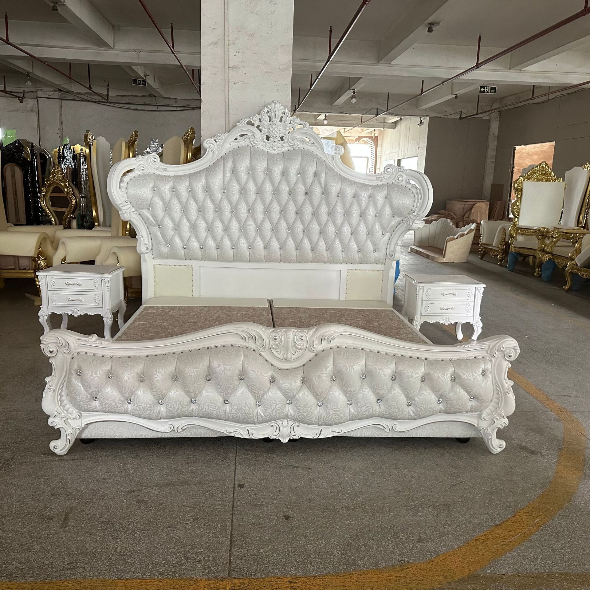 メーカー直販ヨーロッパ式真皮ベッド実木彫刻二人主寝ベッド2メートル高級シャンパン家具家庭用