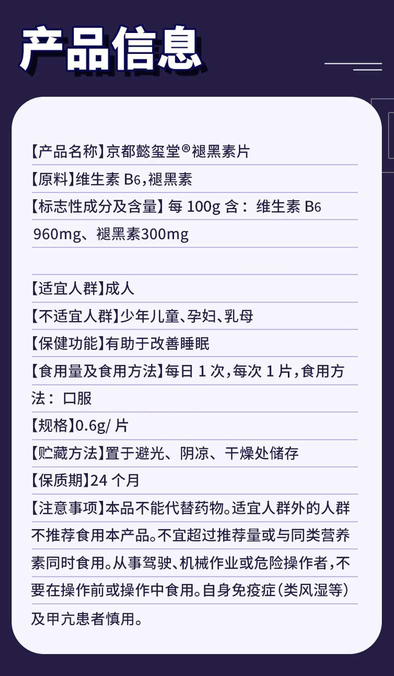 蓝帽维生素b6片 安瓶学生改善睡眠安眠睡眠片 北京同仁堂褪黑素片