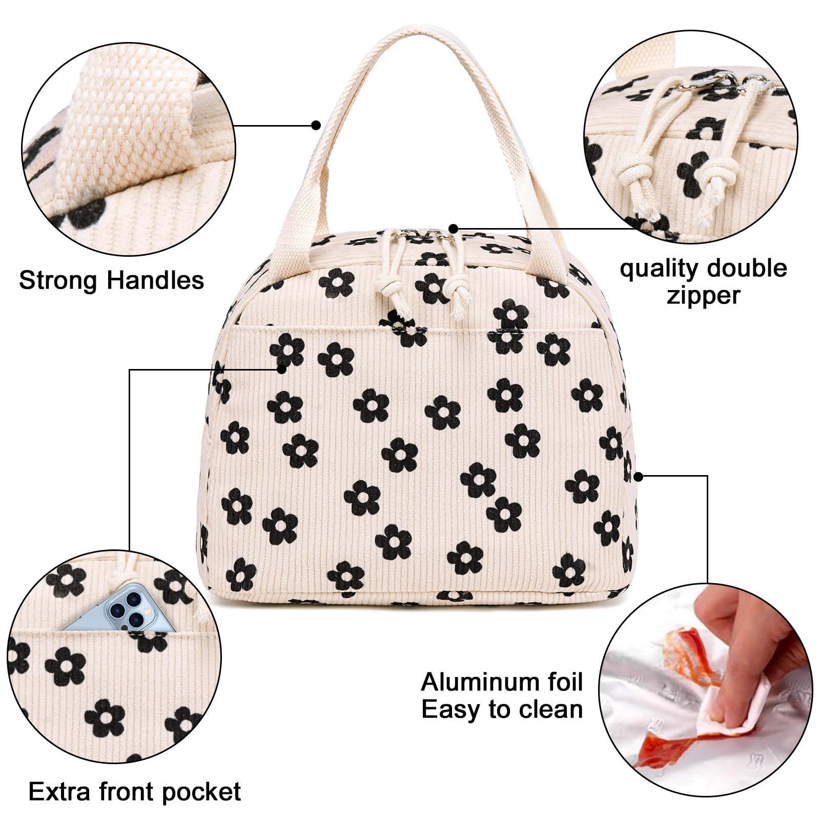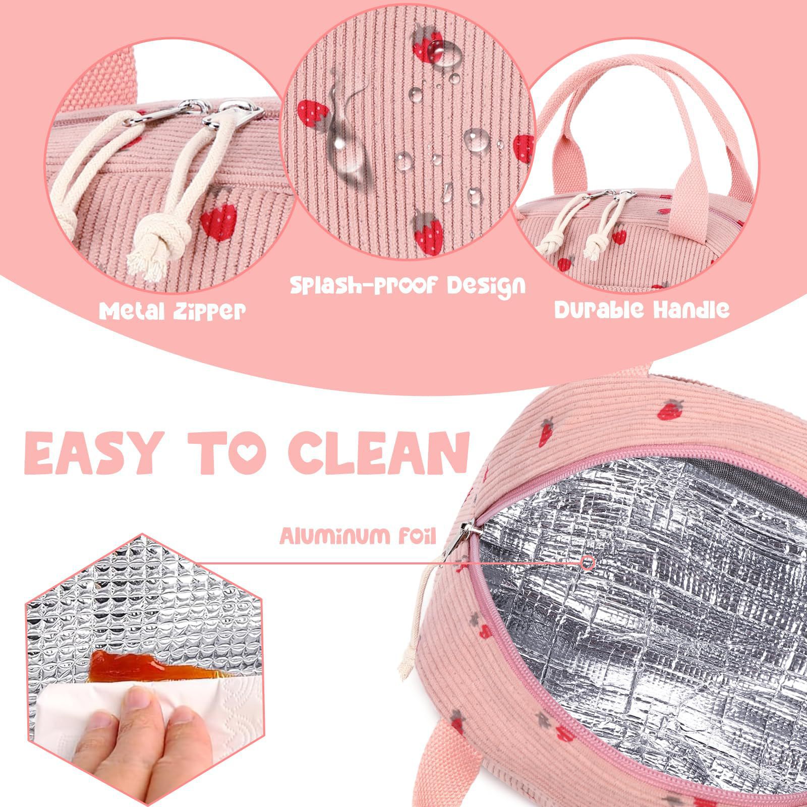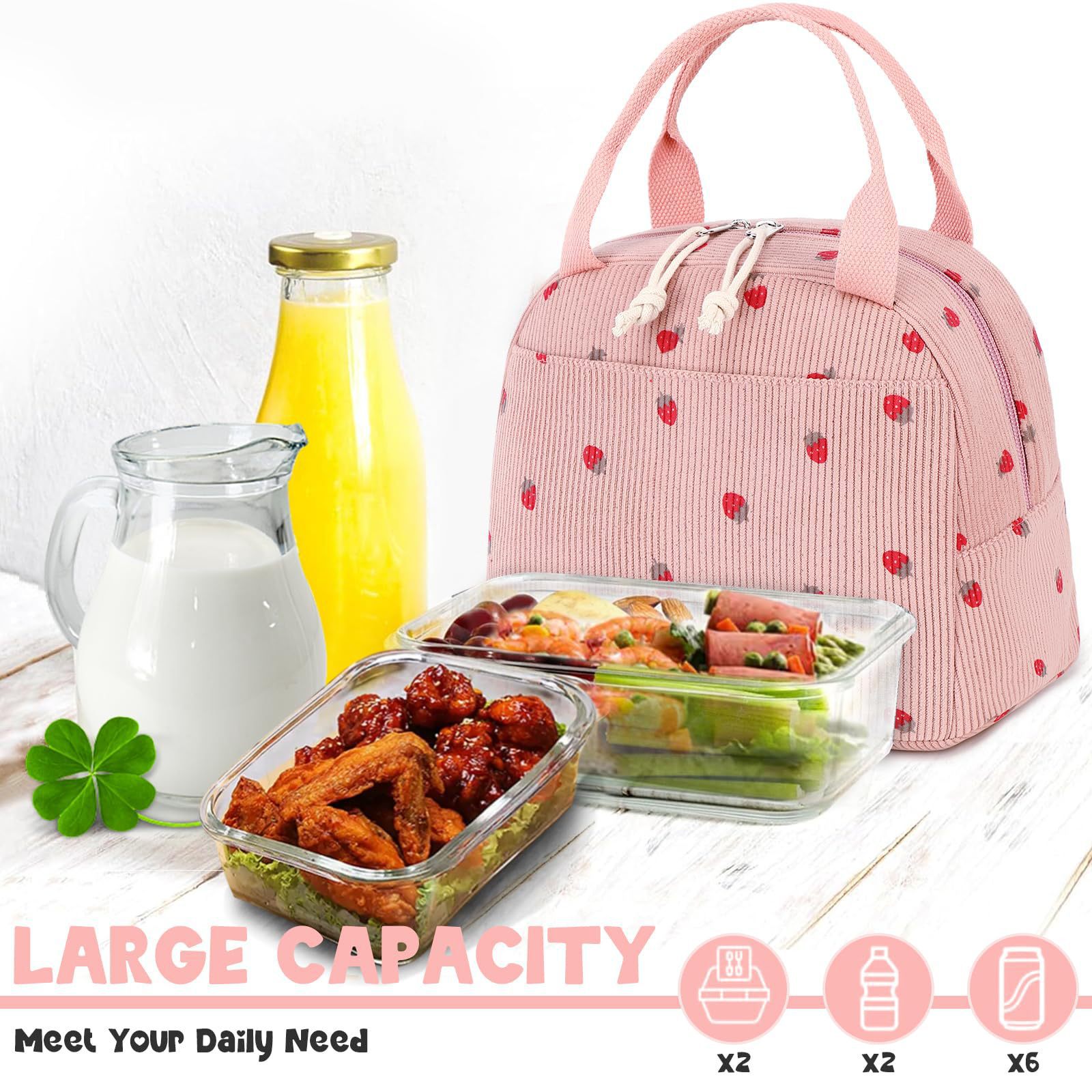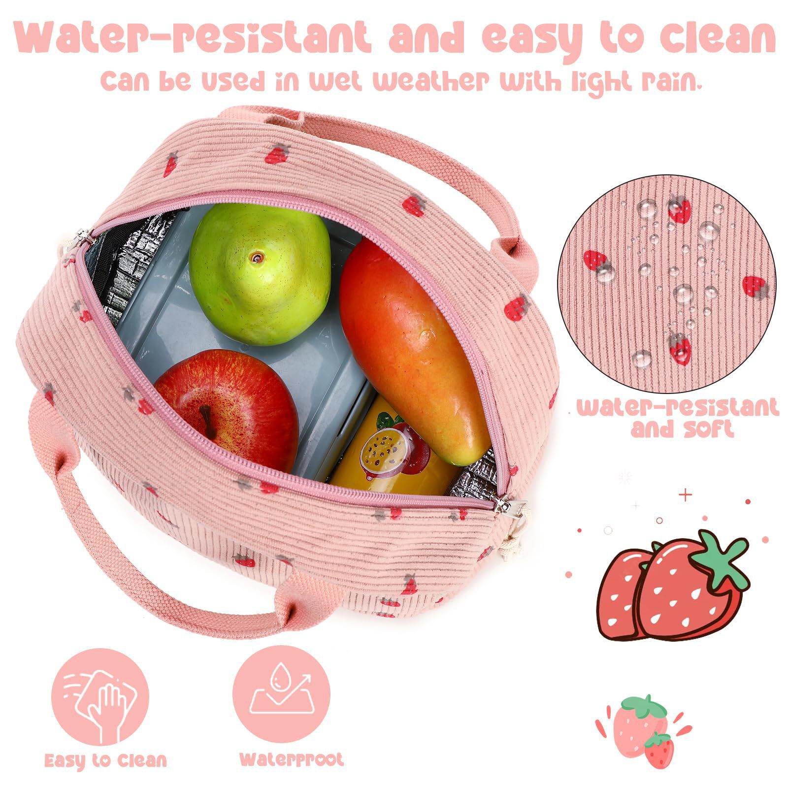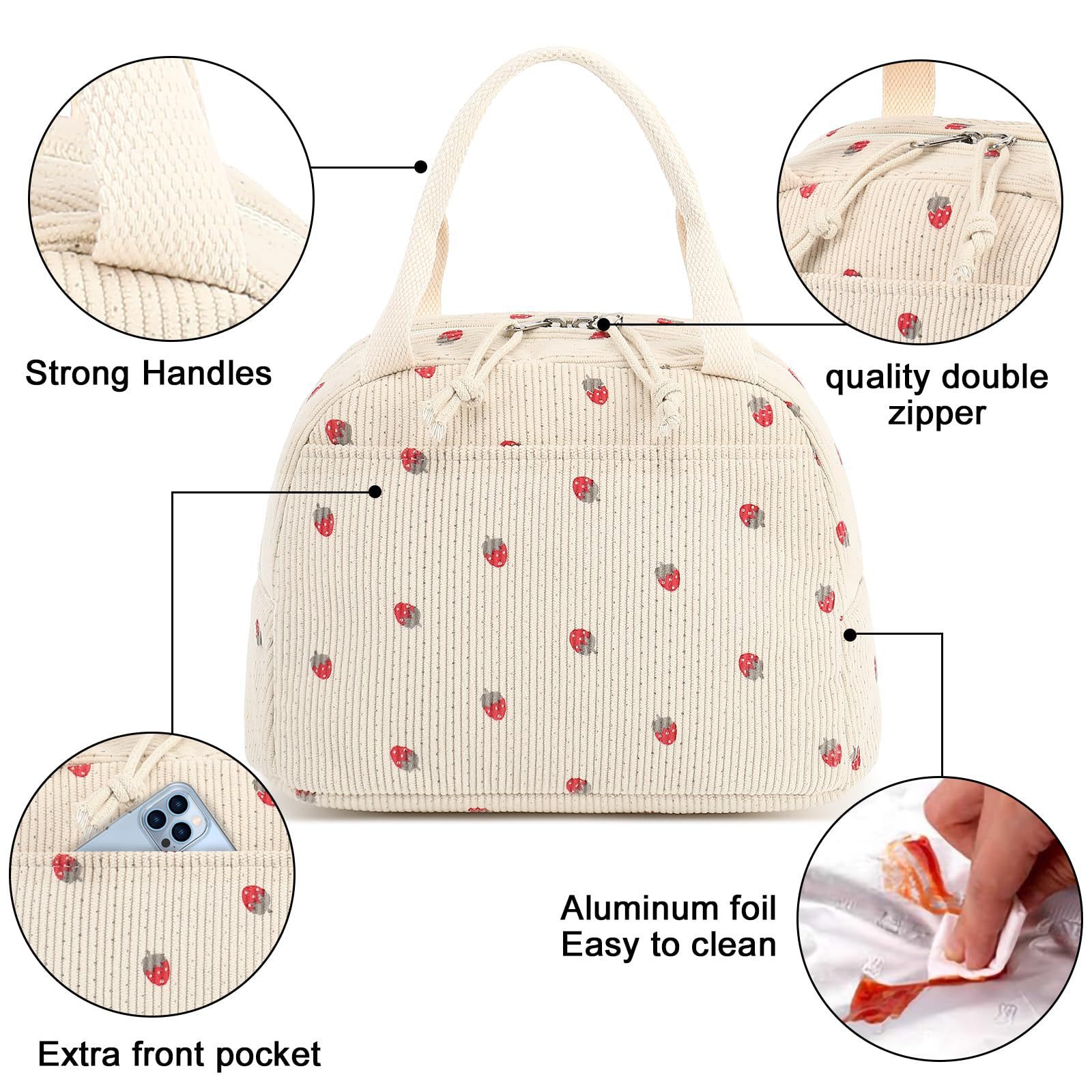 亚马逊午餐包上班带饭便携手提保温便当包灯芯绒草莓餐袋冰包