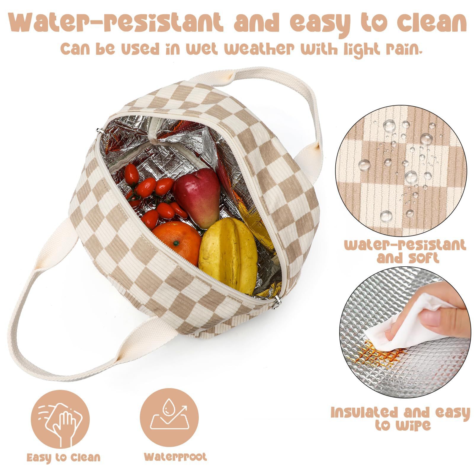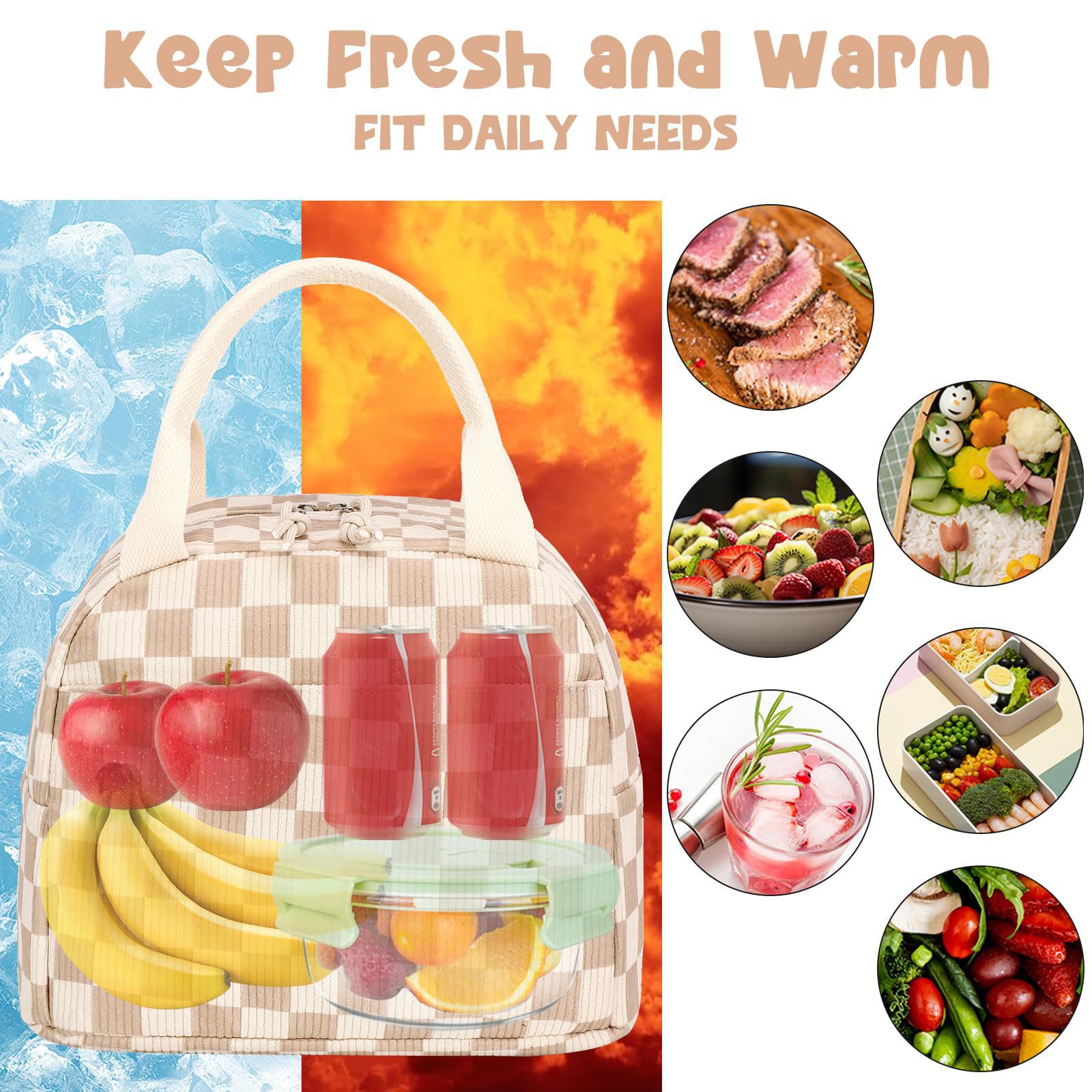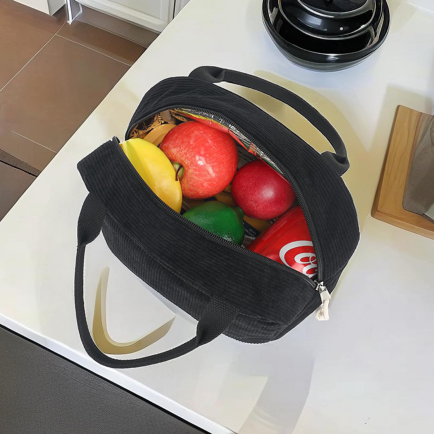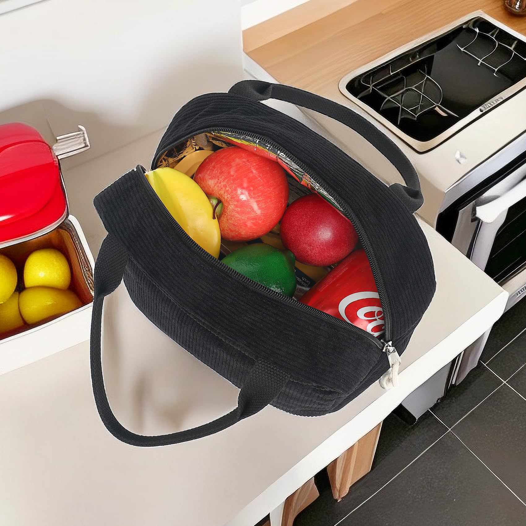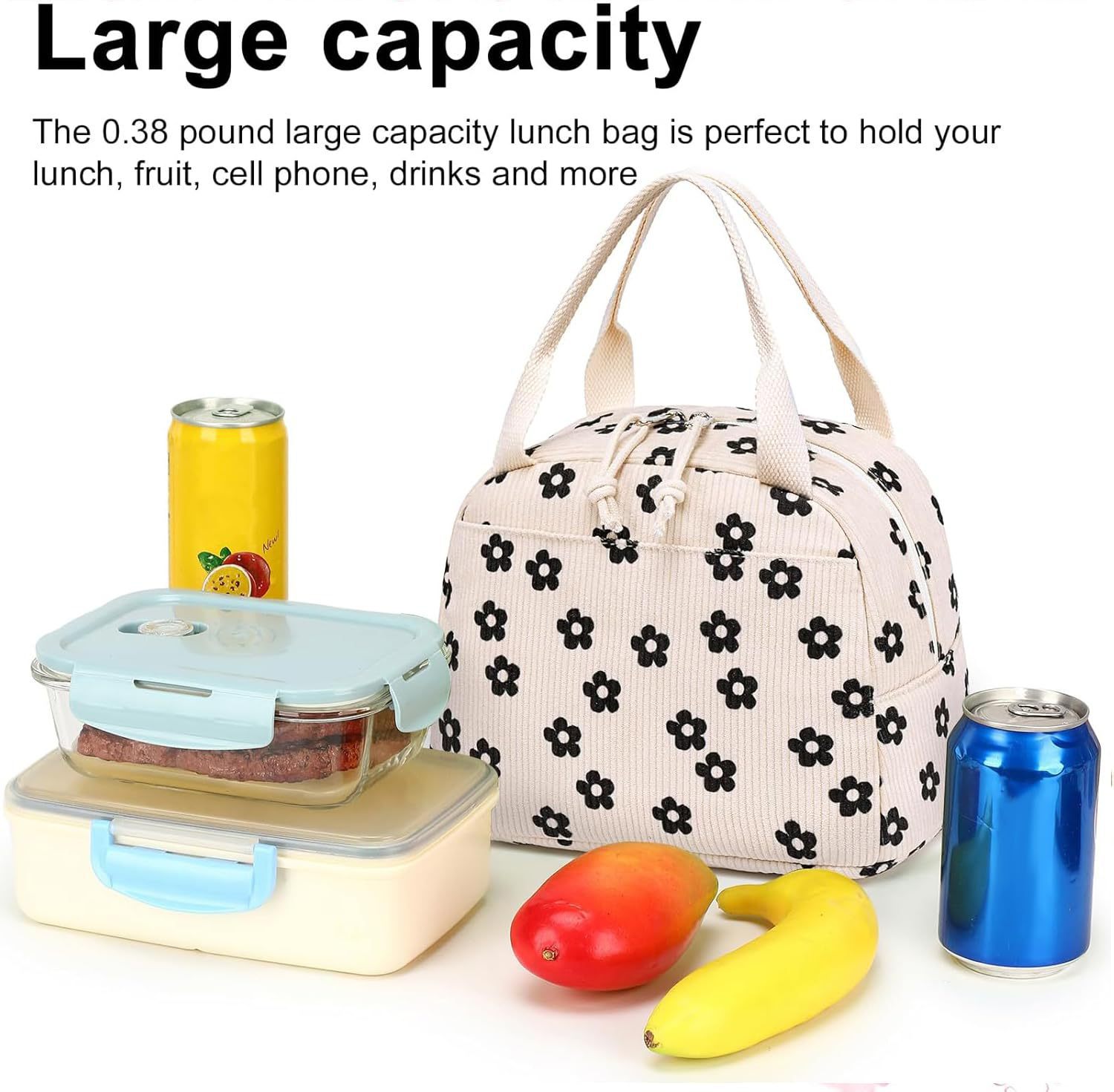 亚马逊午餐包上班带饭便携手提保温便当包灯芯绒草莓餐袋冰包