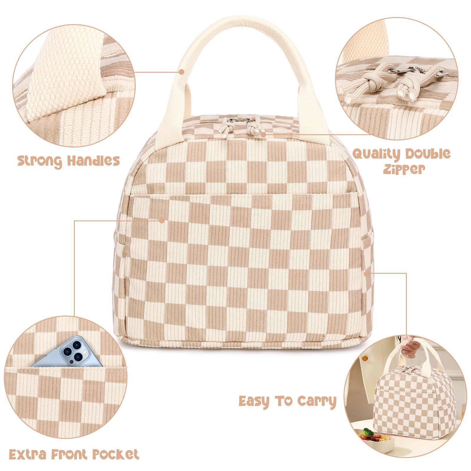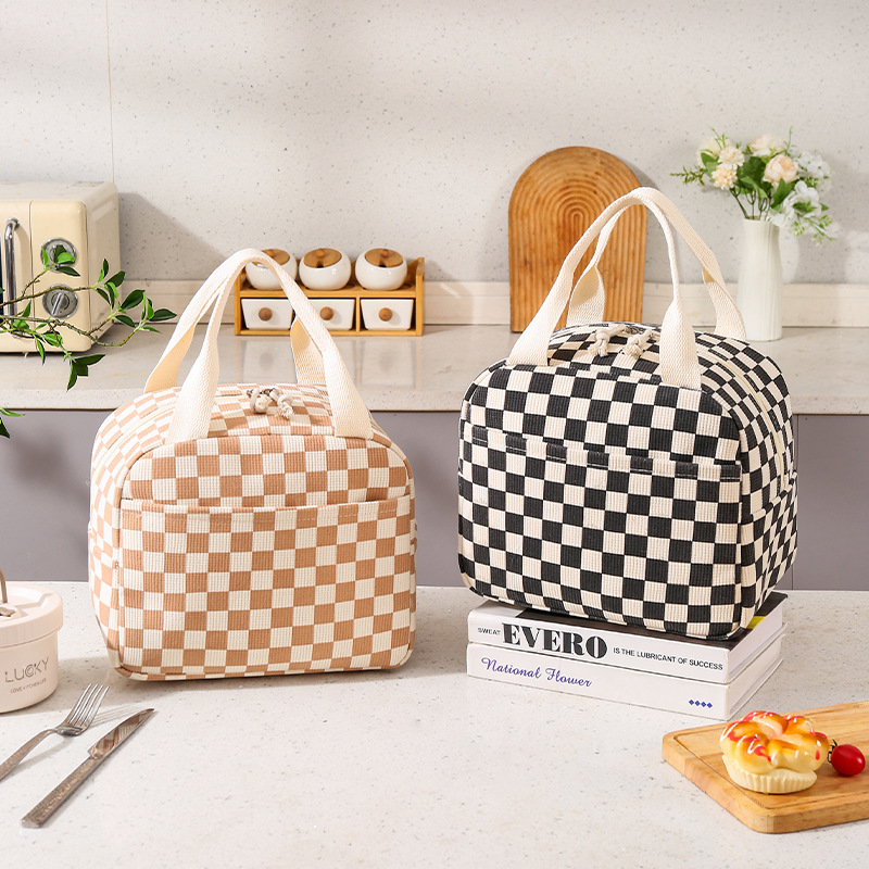クロスボーダーコーデュロイプリントポータブルランチバッグ、旅行、出張、ピクニック、アイスバッグ、ランチボックス、仕事用保温バッグ、ランチボックス