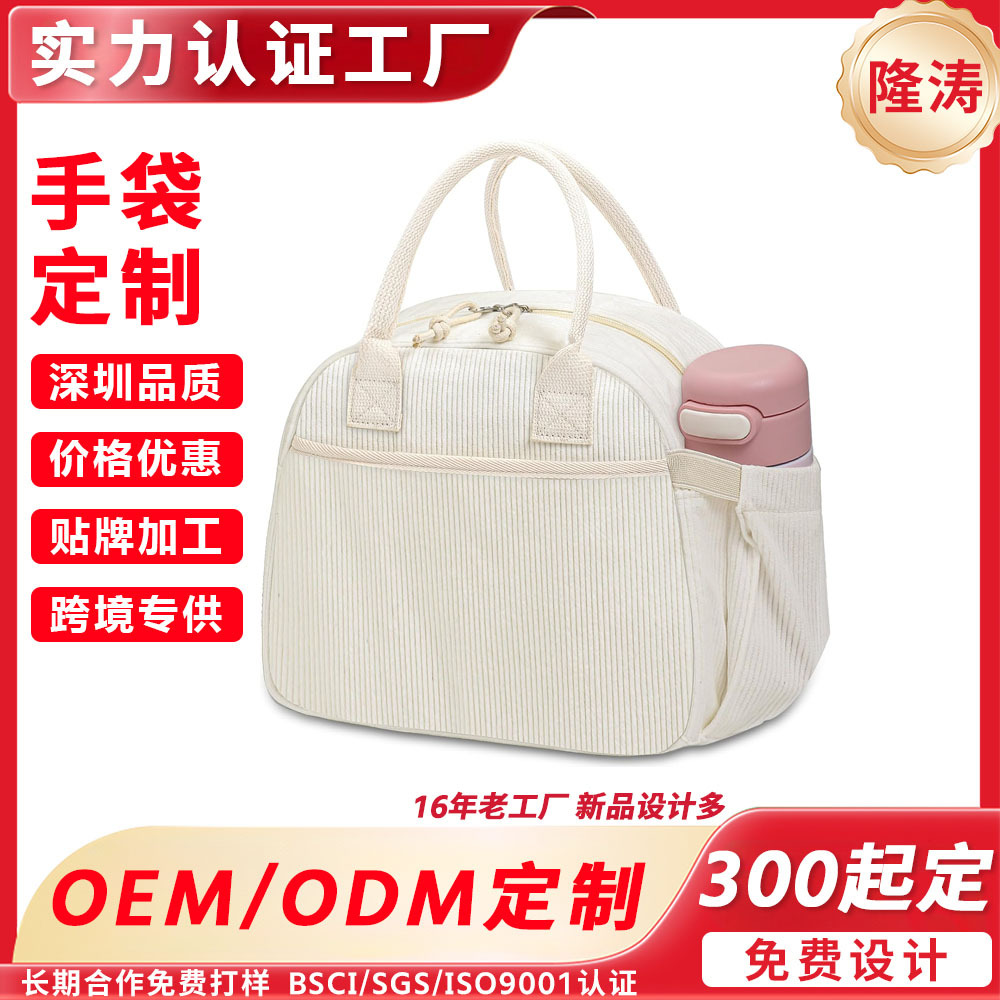 跨境热销手提式饭盒收纳袋上班族午餐便当包灯芯绒学生带饭包厂家