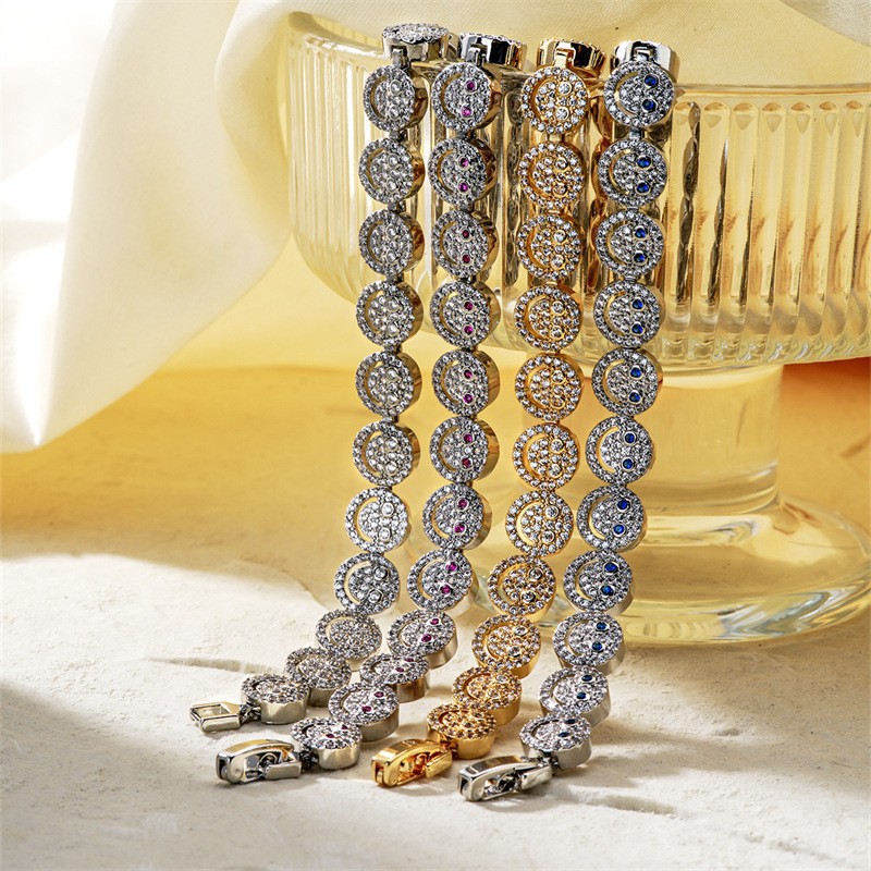 跨境嘻哈轻奢小众铜锆石古巴手链女手饰镶钻轻奢新款笑脸手链批发