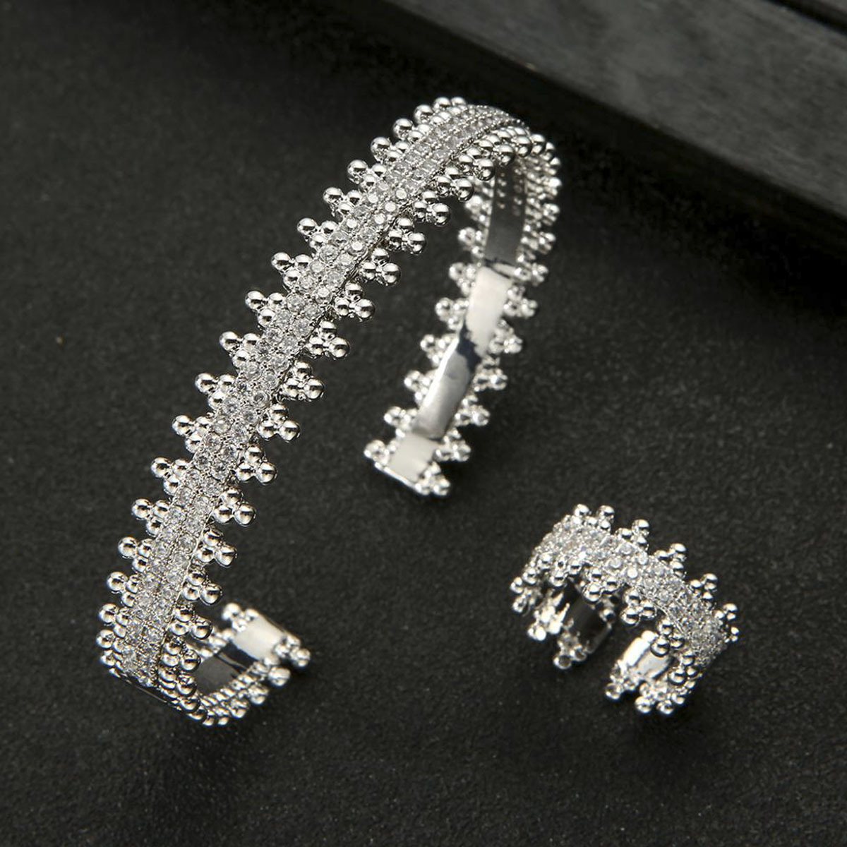 亚马逊爆款跨境专供铜镀金镶锆石开口手镯戒指套装设计感饰品批发