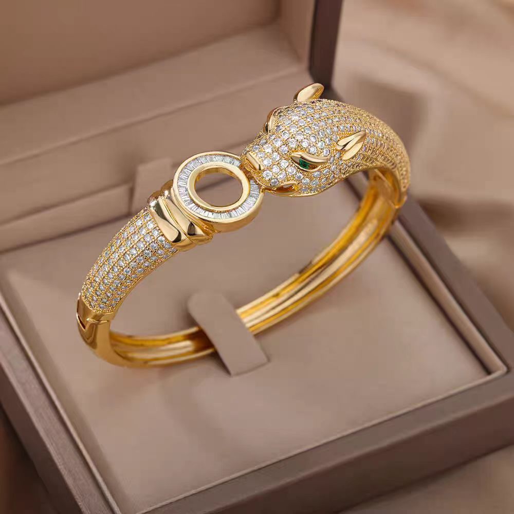 新款豹子镀18K真金满钻锆石卡家手镯女爆款复古时尚电镀手饰批发