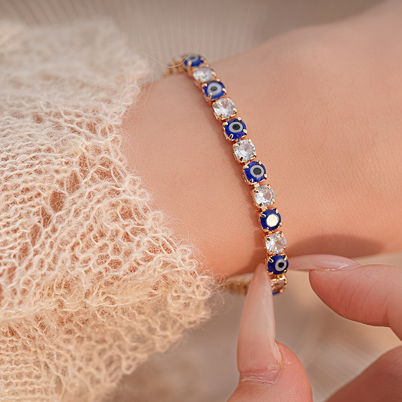 リアルゴールド電気メッキジルコン悪魔の目ブレスレット韓国スタイルライト高級ハイエンドブレスレットインニッチハンドジュエリー卸売女性