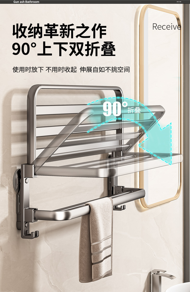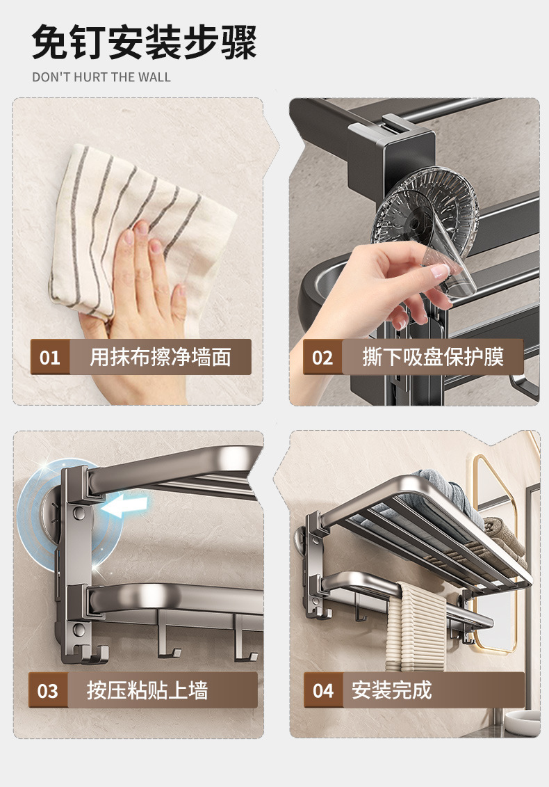 吸盤金属タオルラックバスルームパンチフリーバスルーム収納ラック一体型シャワールームトイレ収納バスタオルラック