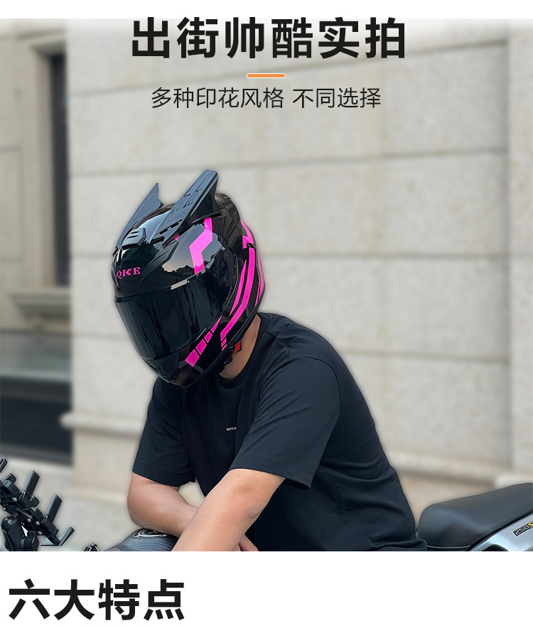 オートバイヘルメットフルフェイス電気自動車パーソナライズされた四季夏 Bluetooth 猫耳オートバイヘルメット
