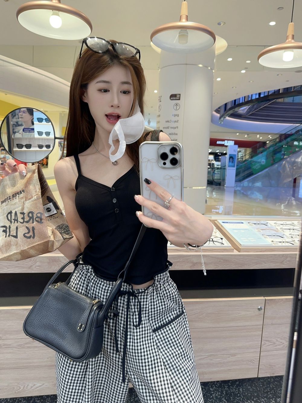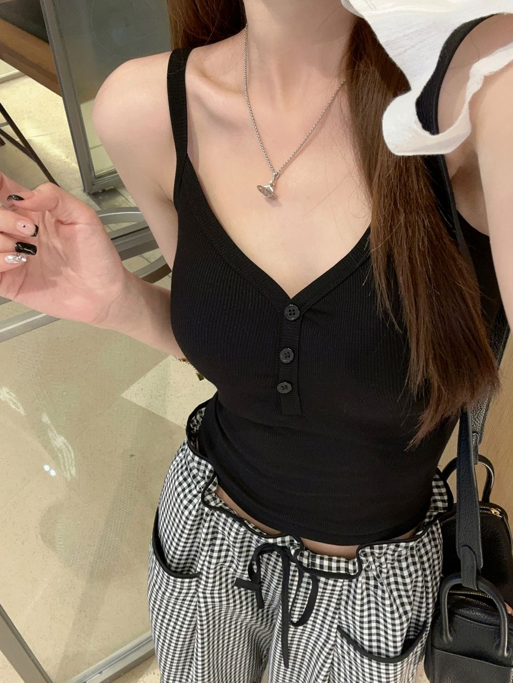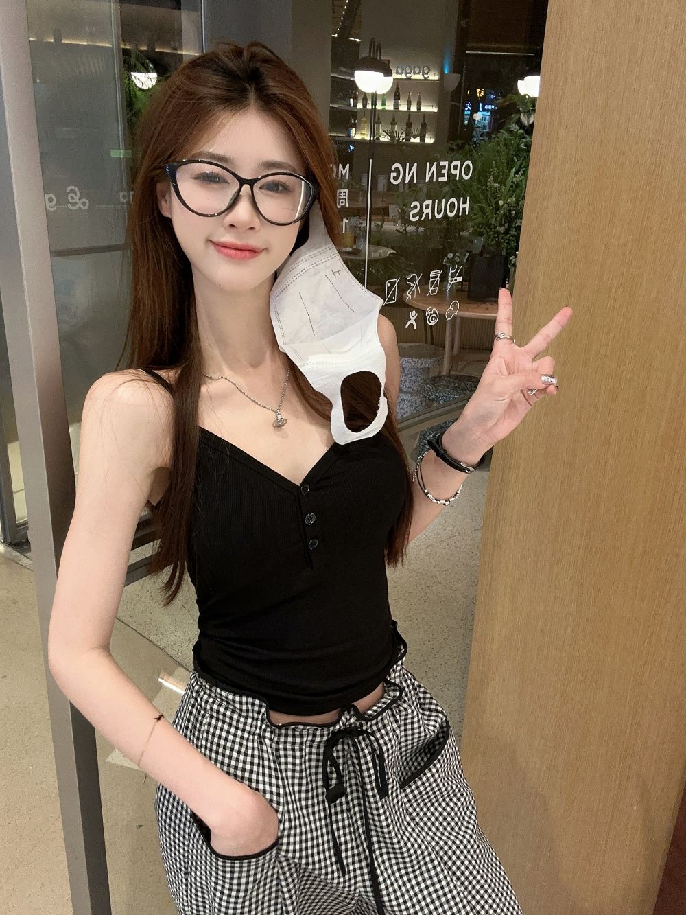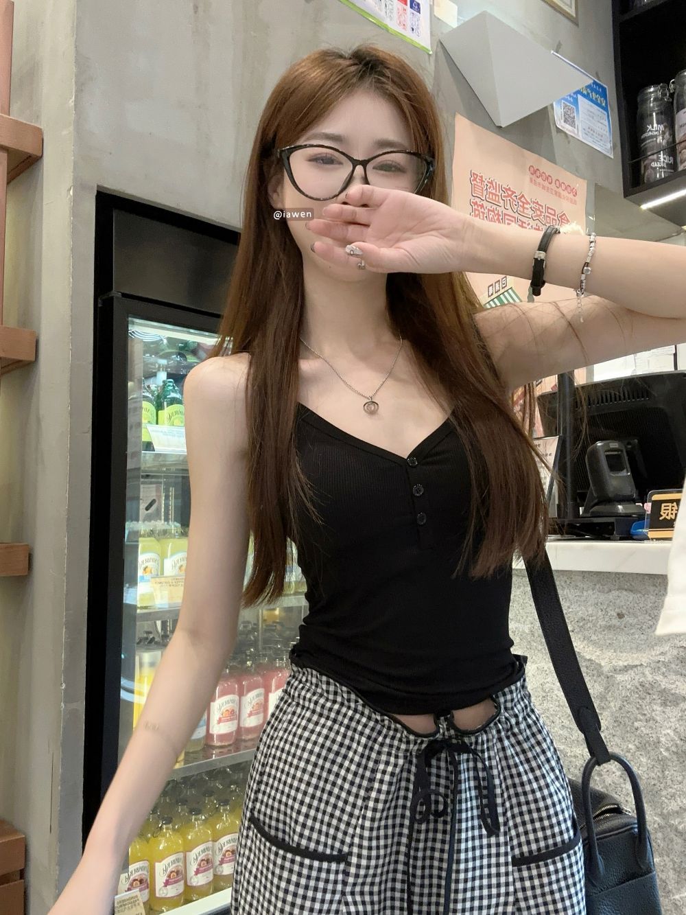 2025春夏の新型の方襟のレースのガーターのベストの女性の大きいサイズは身を修めて外に着て底のボタンの上着を掛けます。