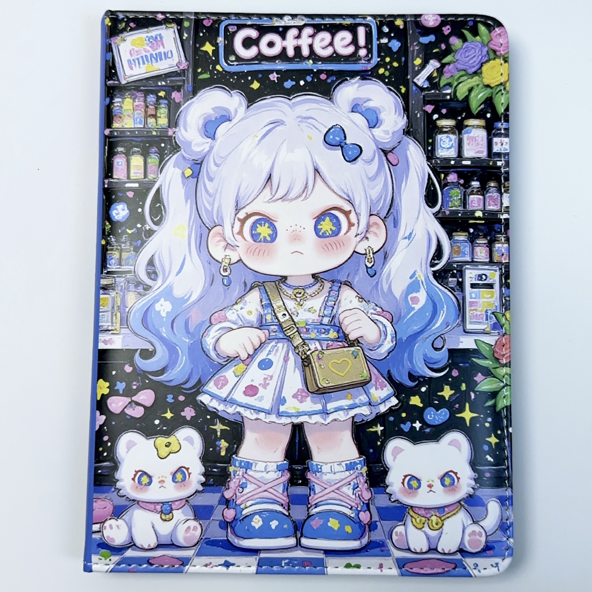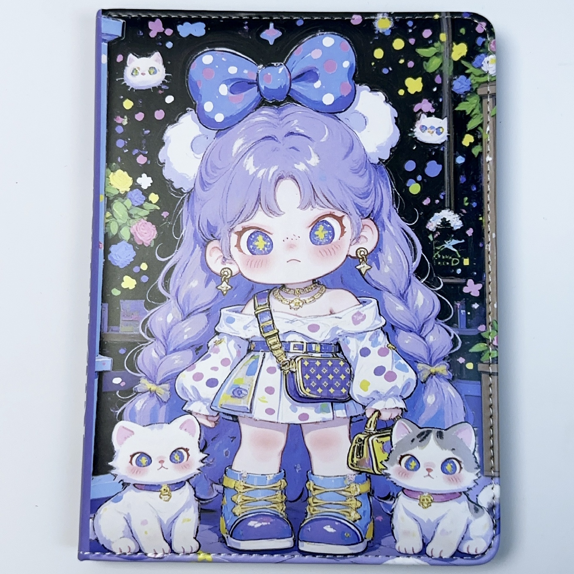 新款B5花样美少女皮质卡通动漫全彩皮面本学生摘抄记事本子手账本