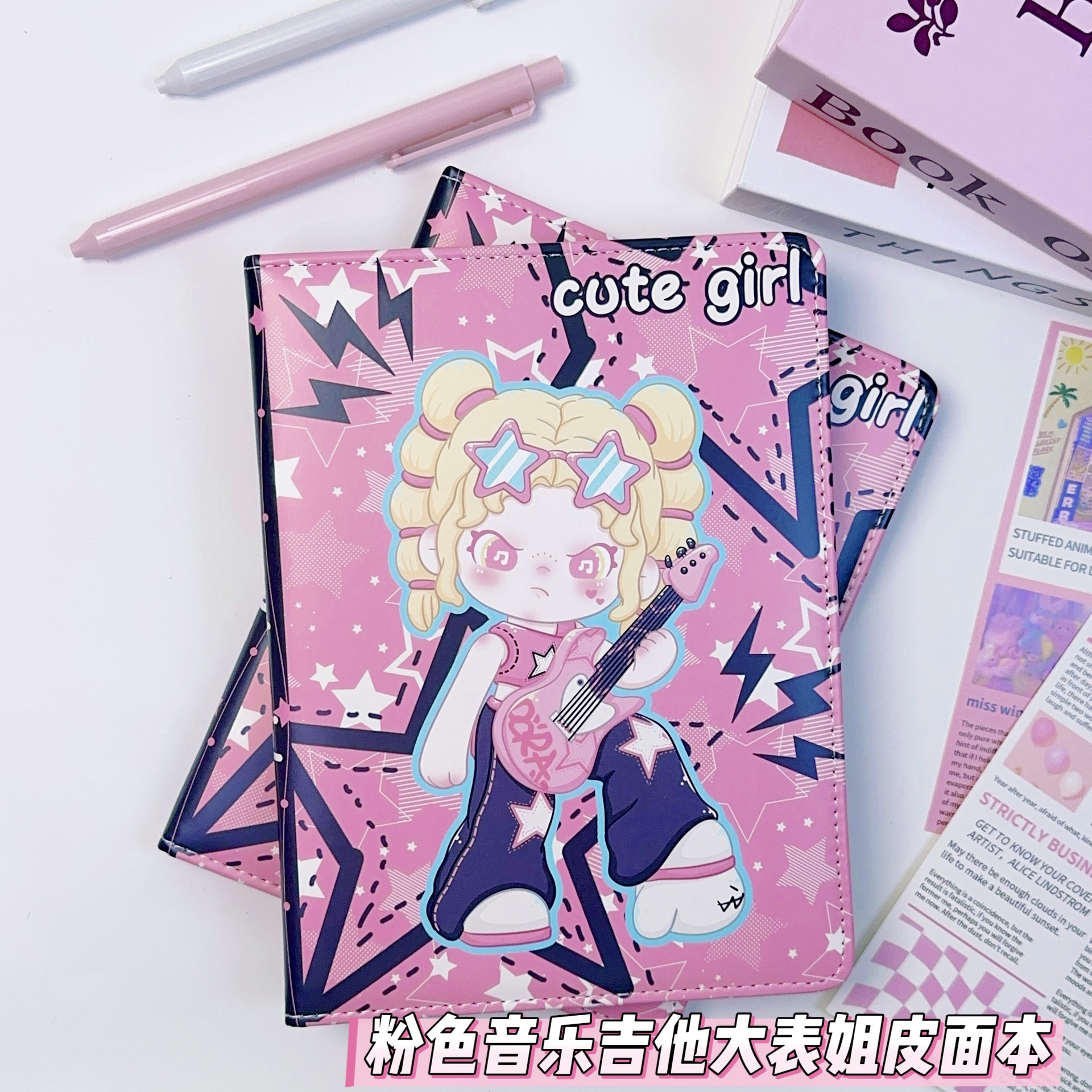 a5皮面活页本大表姐女孩系列记本潮酷卡通皮面本学生高颜值手账本