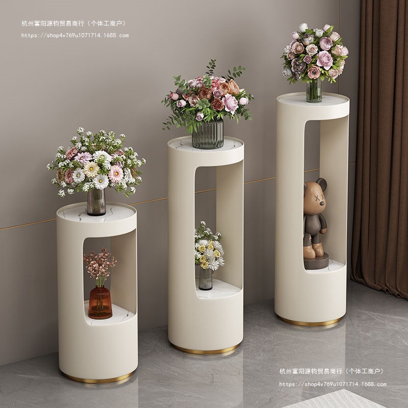 北欧風フラワースタンド、置物棚、軽奢風リビング、室内バルコニー、シンプルなフロアスタンド型植木鉢、大理石、グリーンリーフ