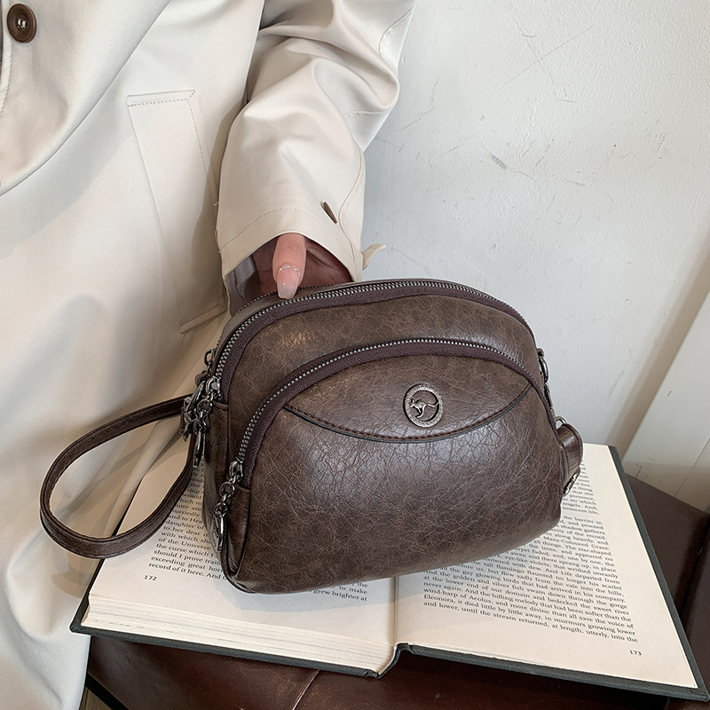 跨境流行包包女2025新款休闲百搭小圆包大容量独立三层单肩斜挎包