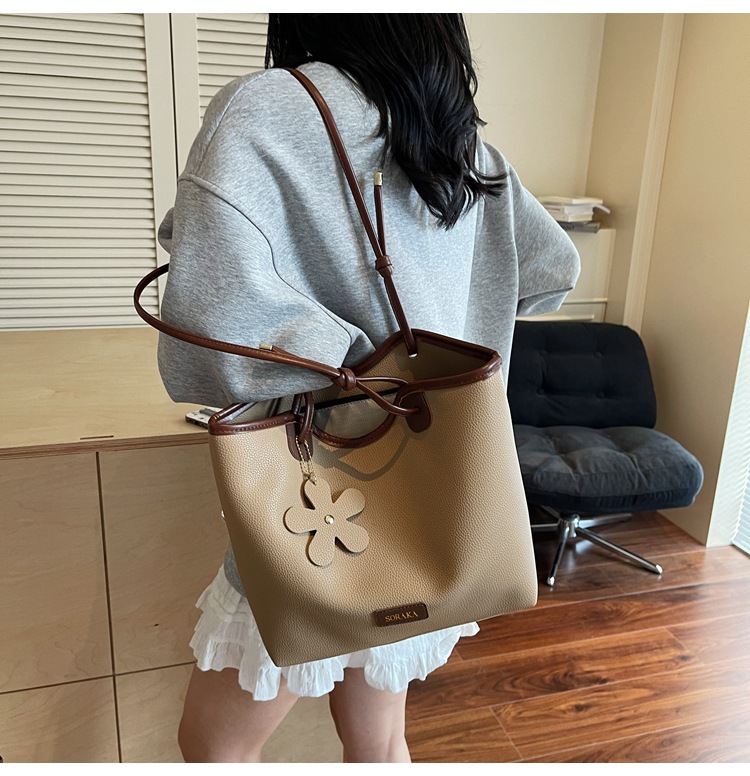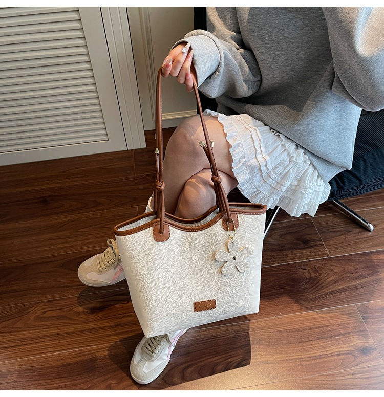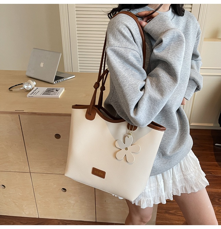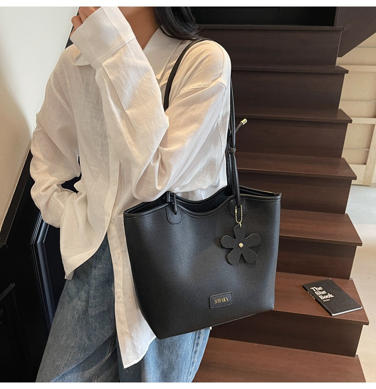 クロスボーダー大容量通勤バッグトートバッグ2025百合新型シンプルカジュアルファッションシングル肩高級通勤