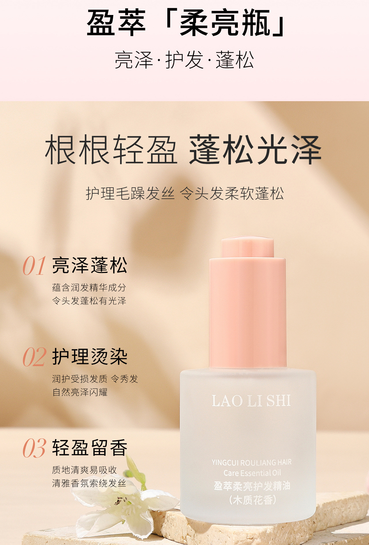 Laurie Shi Yingcui ソフトで明るく滑らかなヘアケア エッセンシャル オイルは、乾燥を改善し、滑らかで縮れを軽減し、軽くてふわふわの香りが長持ちします。