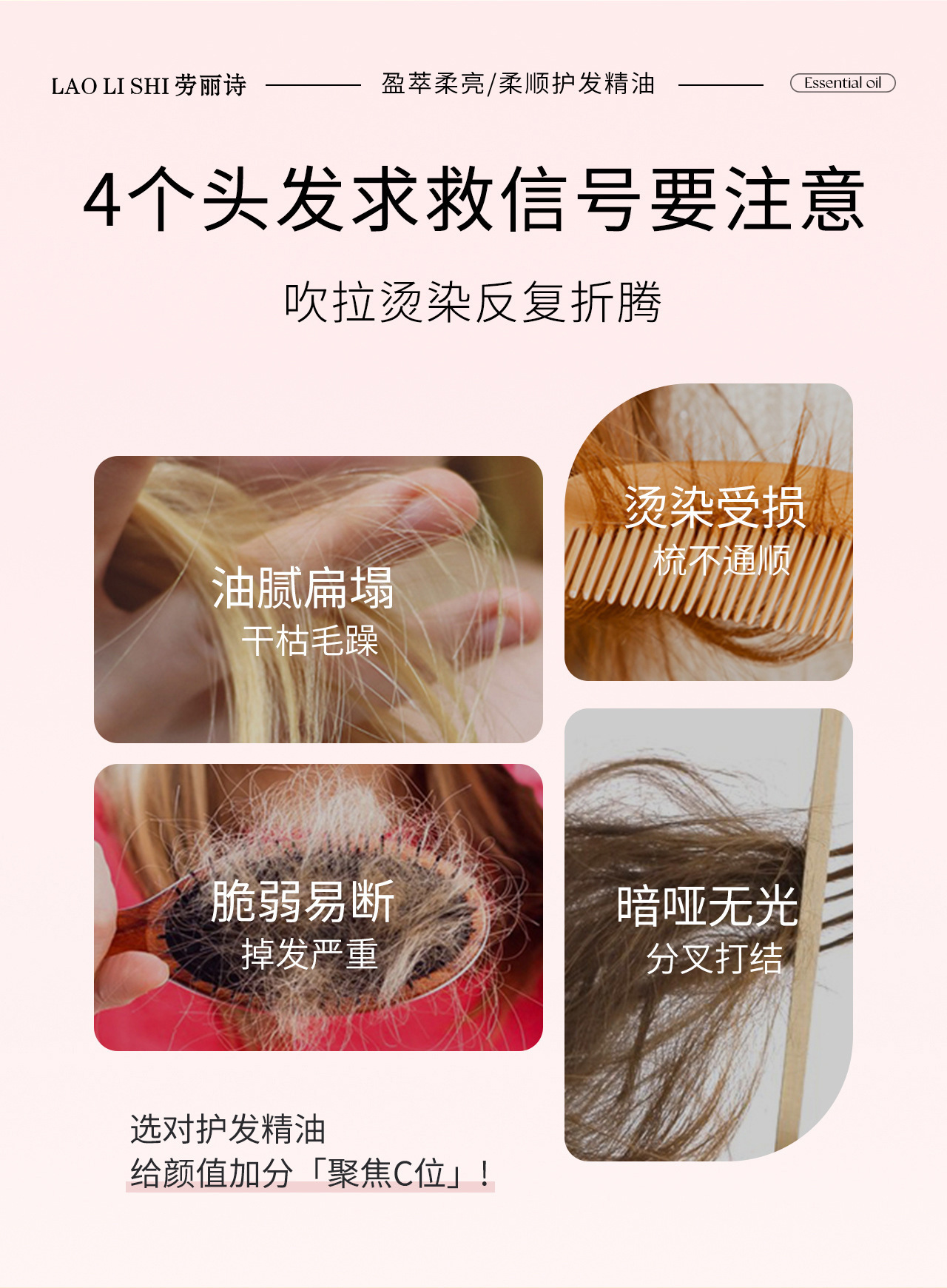Laurie Shi Yingcui ソフト、ブライト、スムース ヘアケア エッセンシャル オイルは、乾燥を改善し、滑らかで縮れを軽減し、軽くてふわふわの香りが長持ちします。