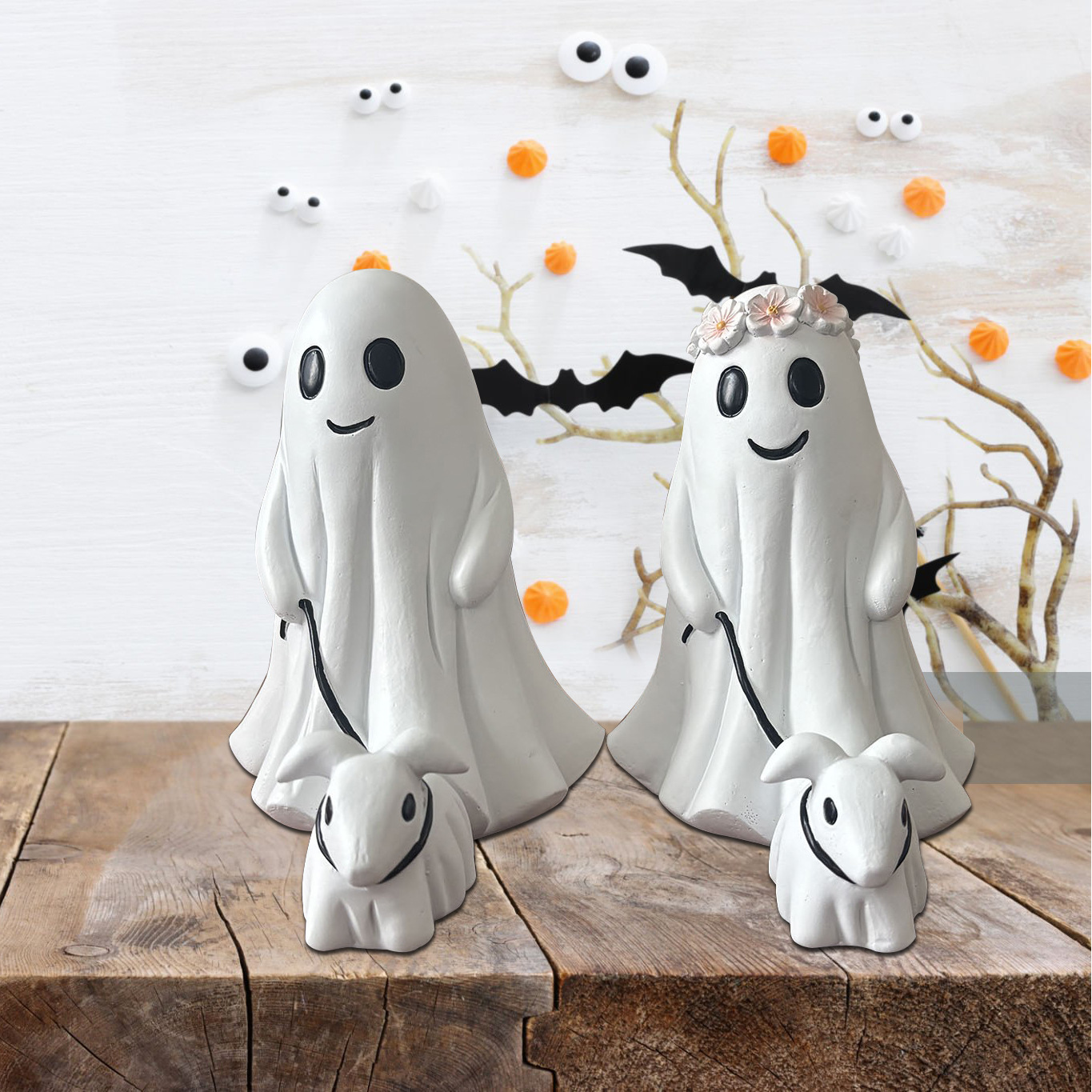 ハロウィン樹脂ゴースト犬の散歩の装飾品家の庭の装飾ゴーストホラー装飾ゴースト犬の装飾品