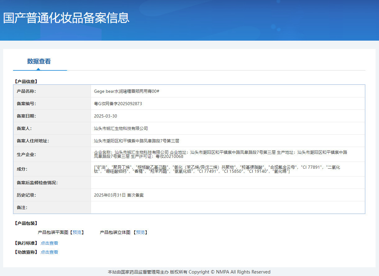 非特殊化粧品登録証番号 広東Gメイクアップネットワーク準備番号 2025123713