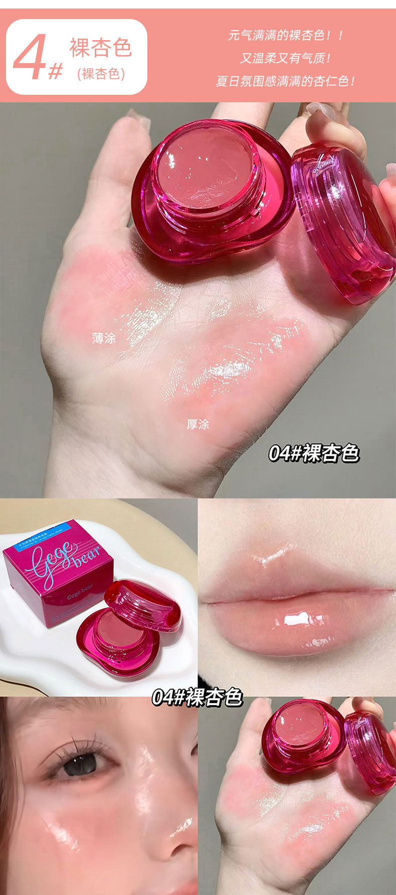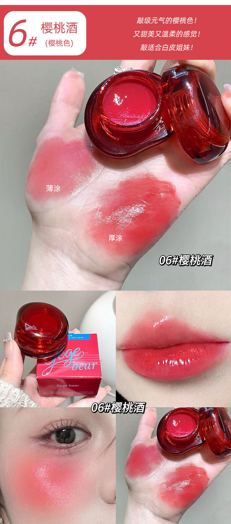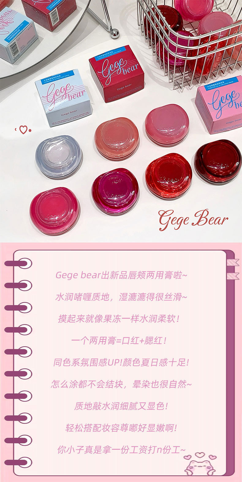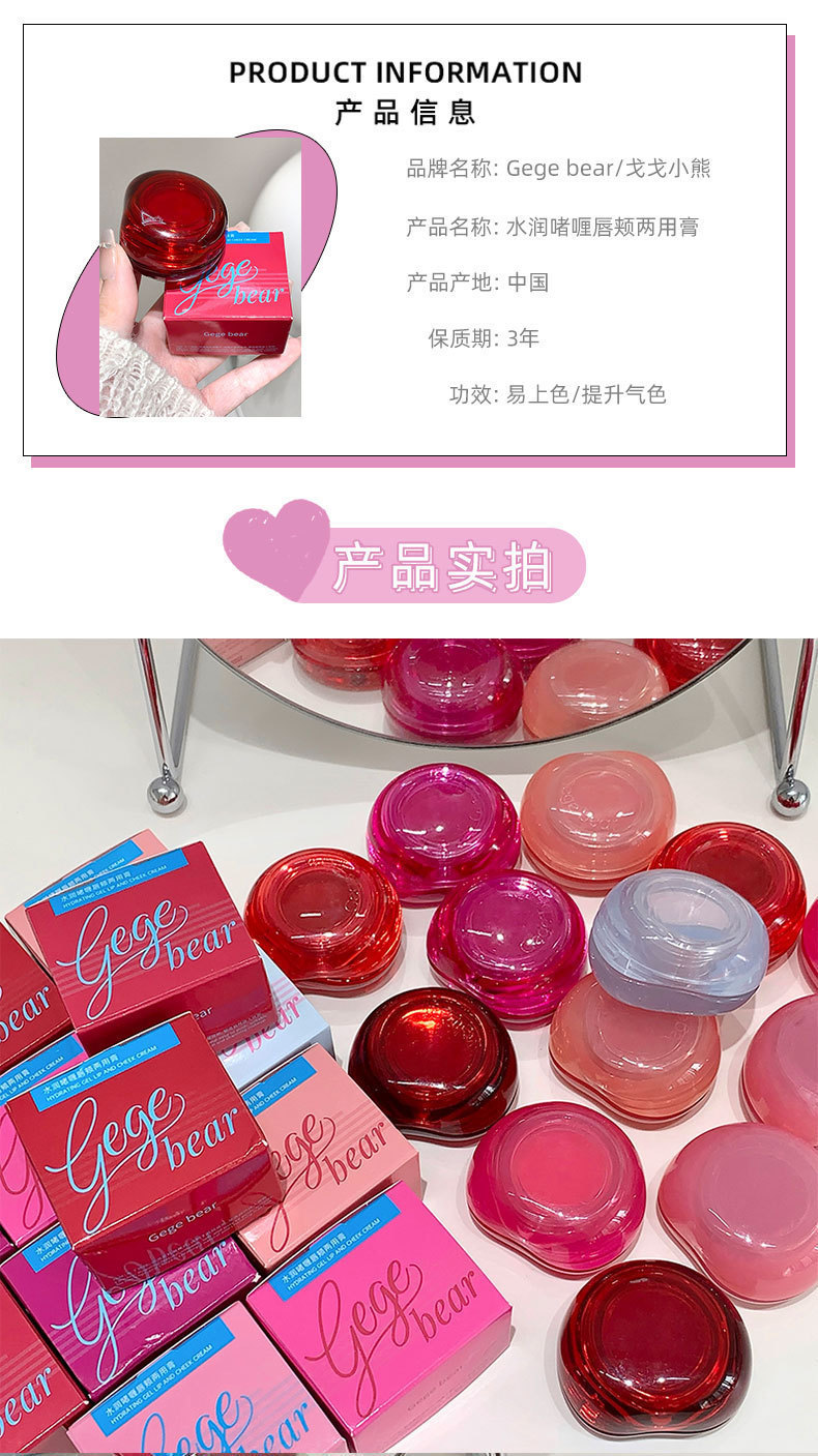 Gegebear ハイドレーティング リップ アンド チーク バーム ハイライティング ブラッシュ 保湿と若々しいガール ウォーター ライト リップスティック クロスボーダー メイクアップ