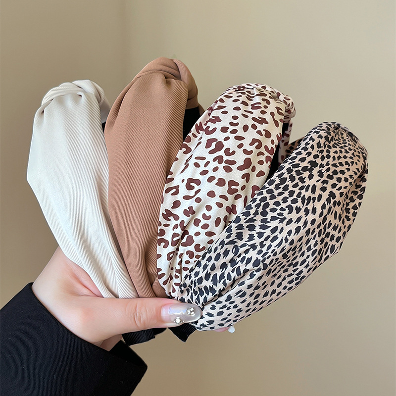 跨境欧美豹纹发箍新款发饰纯色打结高颅顶头饰复古布艺宽边饰品女