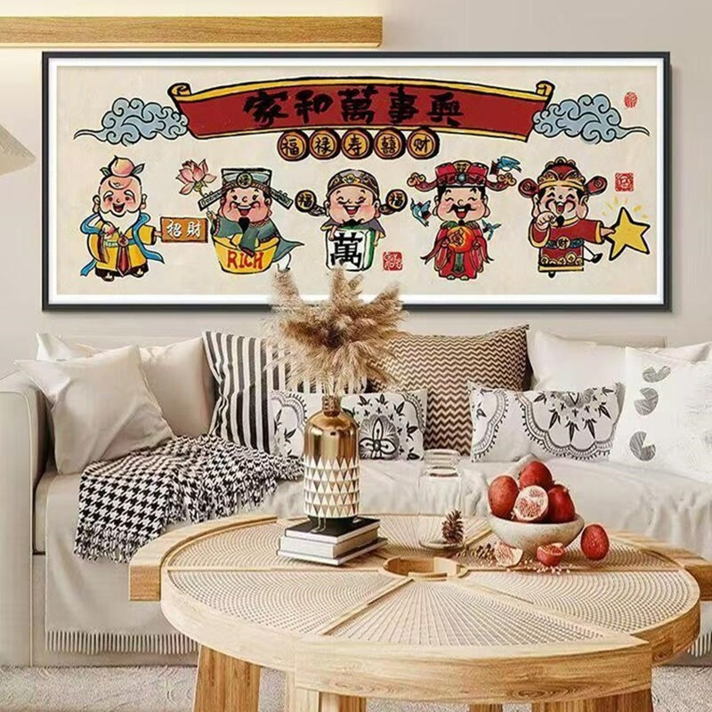 モナリザ クロスステッチ リビングルーム 福の神 2025 新しいスタイル 家族とすべての繁栄と幸運 手作りの糸刺繍