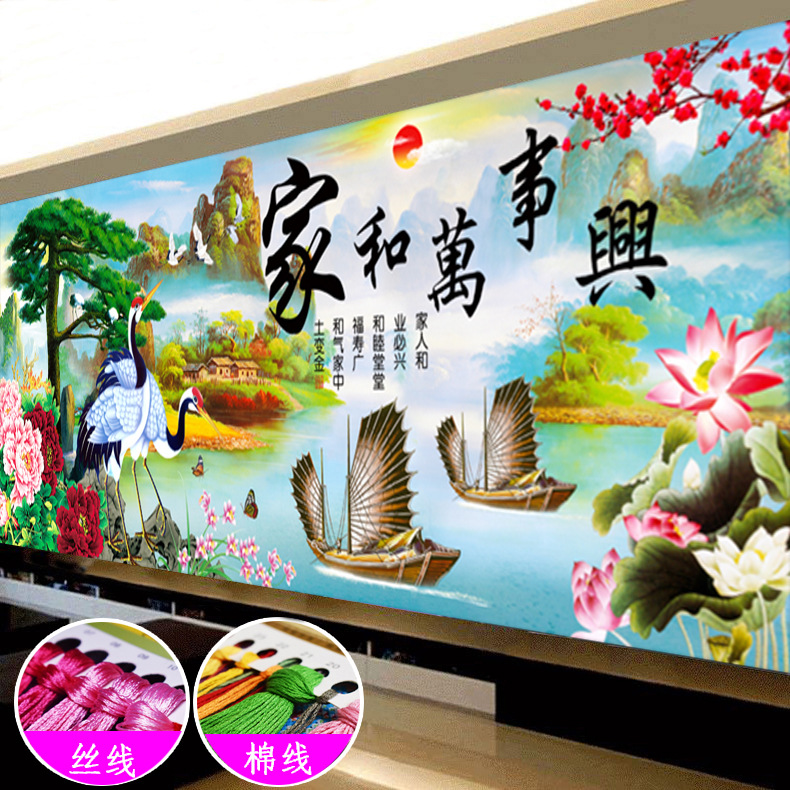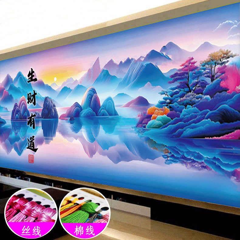 生財道十字刺繍2025新型線刺繍客間大幅風景山水画新中国式手作業自己刺繍