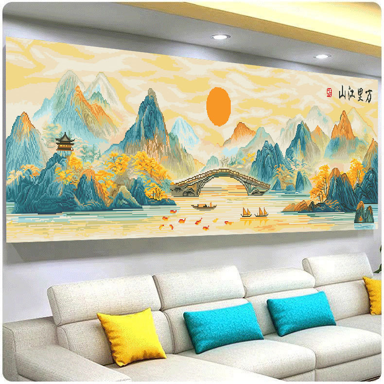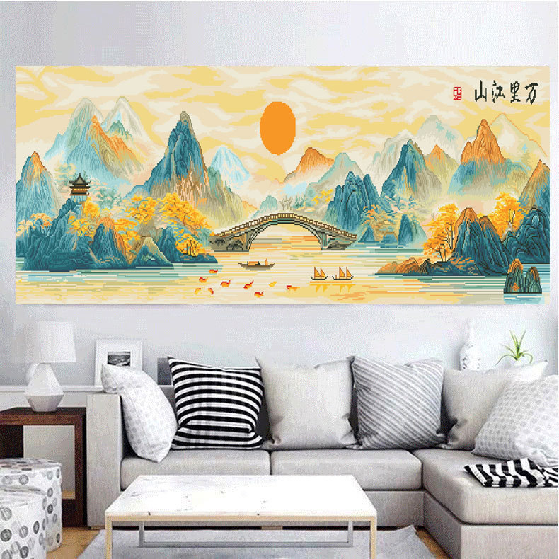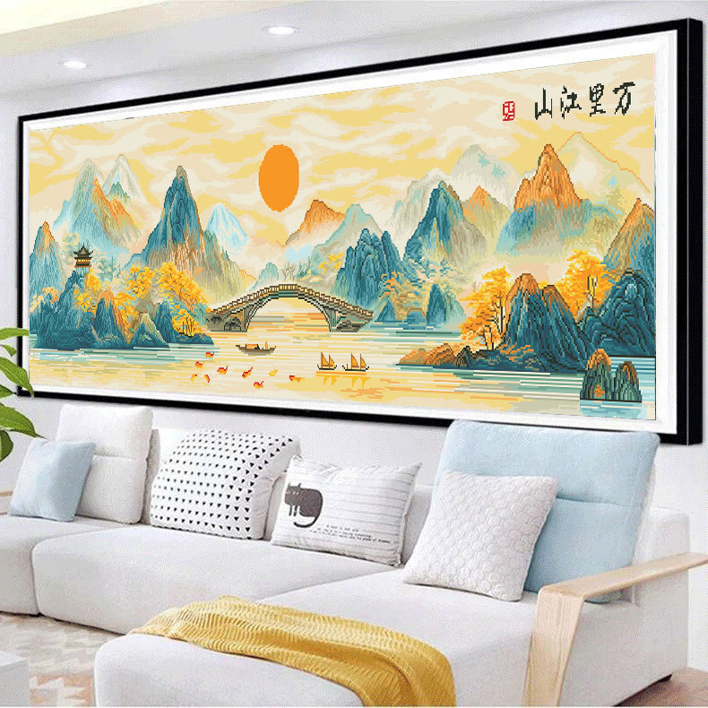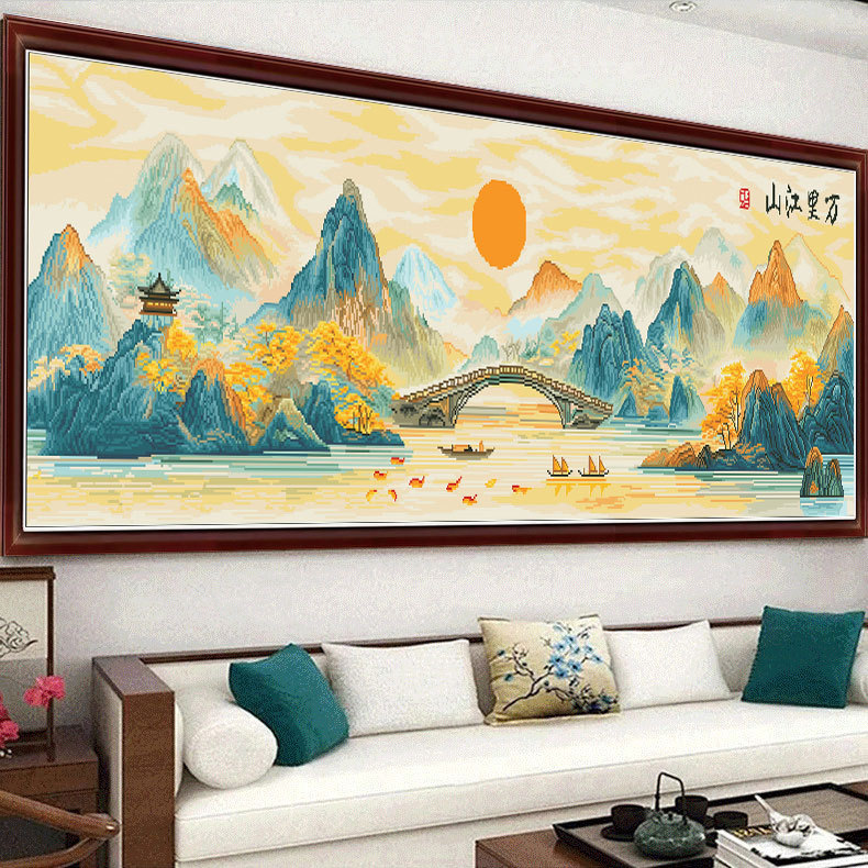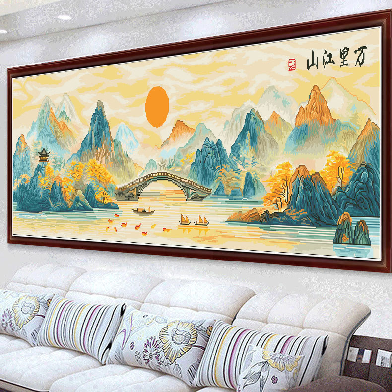 2025年新作クロスステッチ江山絵画万里江山リビングルーム風景フル刺繍シンプルモダン手作り自己刺繍