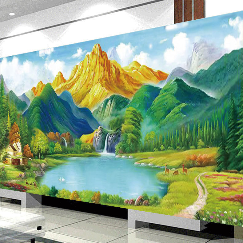 モナリサの新型プリント十字刺繍客間山水画家と万事興財運版流水生財