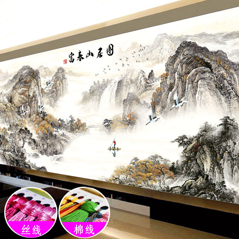 モナリサ十字刺繍流水生財線刺繍客間山水画富春山居図風景画代理