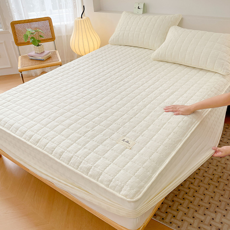 日本式原綿ベッド笠大豆挟み綿マットレス保護カバー肌綿全包ベッドカバー防塵滑り止め純色ベッドカバー