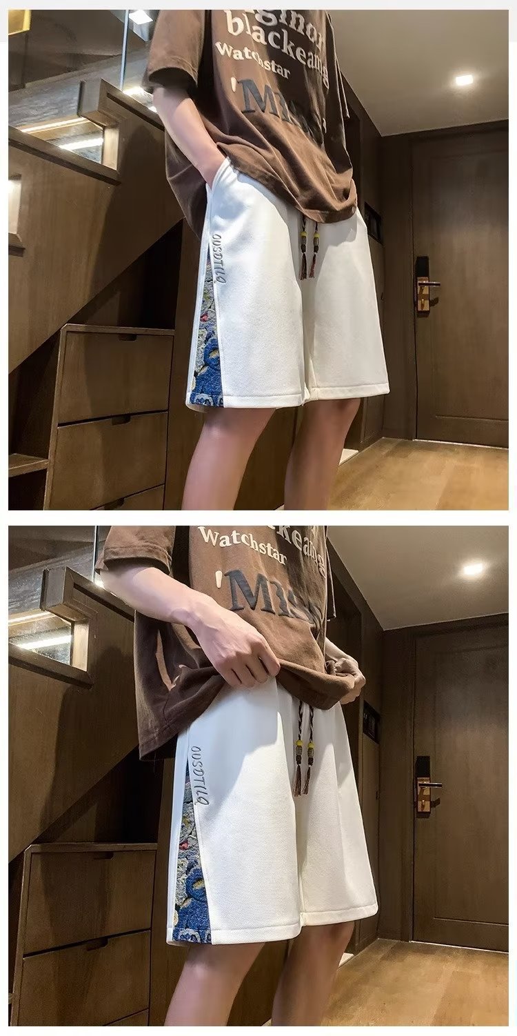 ハイストリートショーツ、アメリカンスポーツパンツ、メンズ5点パンツ、メンズ夏トレンドブランド、ゆったり大きいサイズカジュアルミッドパンツ