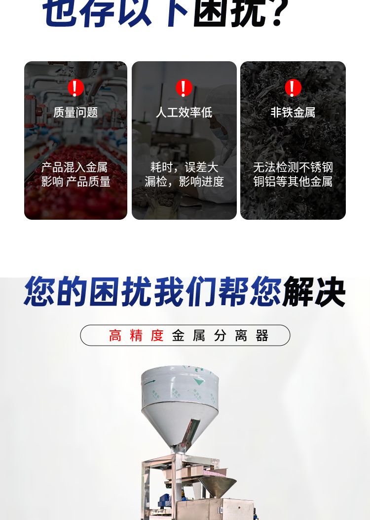 全ステンレス金属分離器304材料金属分離器食品級業界金属分離機