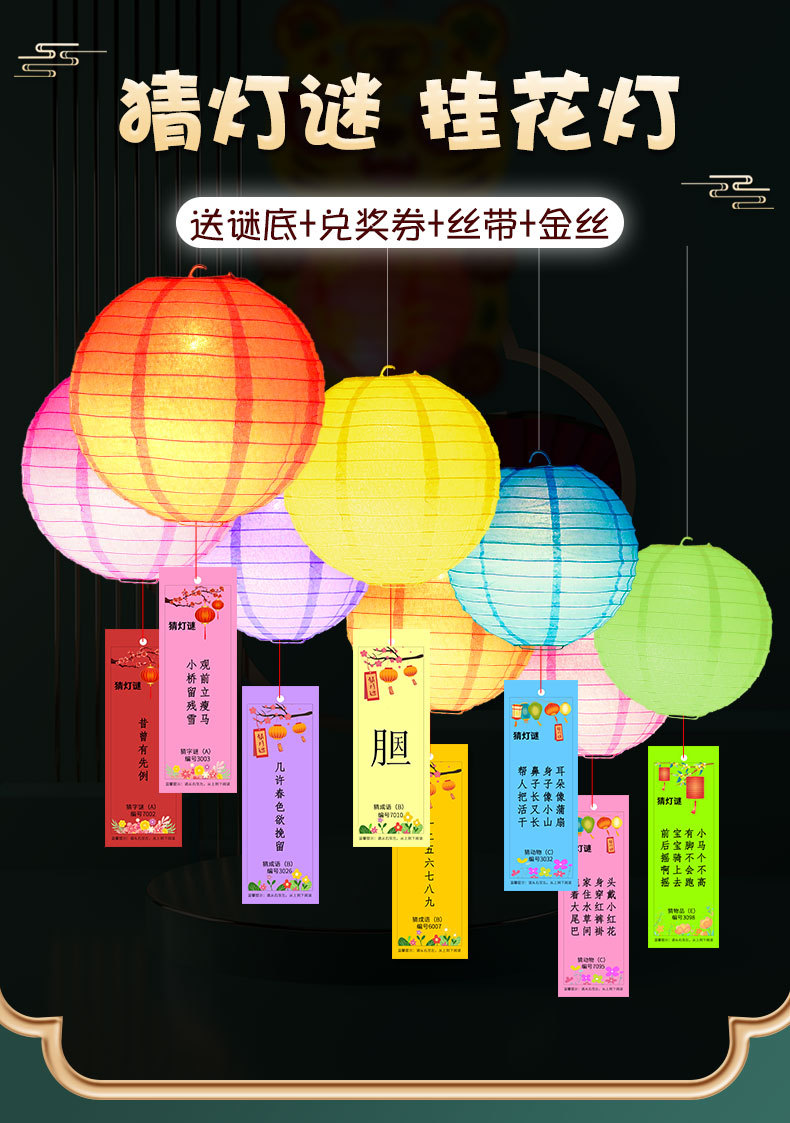 春节元旦猜灯谜灯笼卡片传统喜庆游戏流苏字谜语空白挂牌场景布置