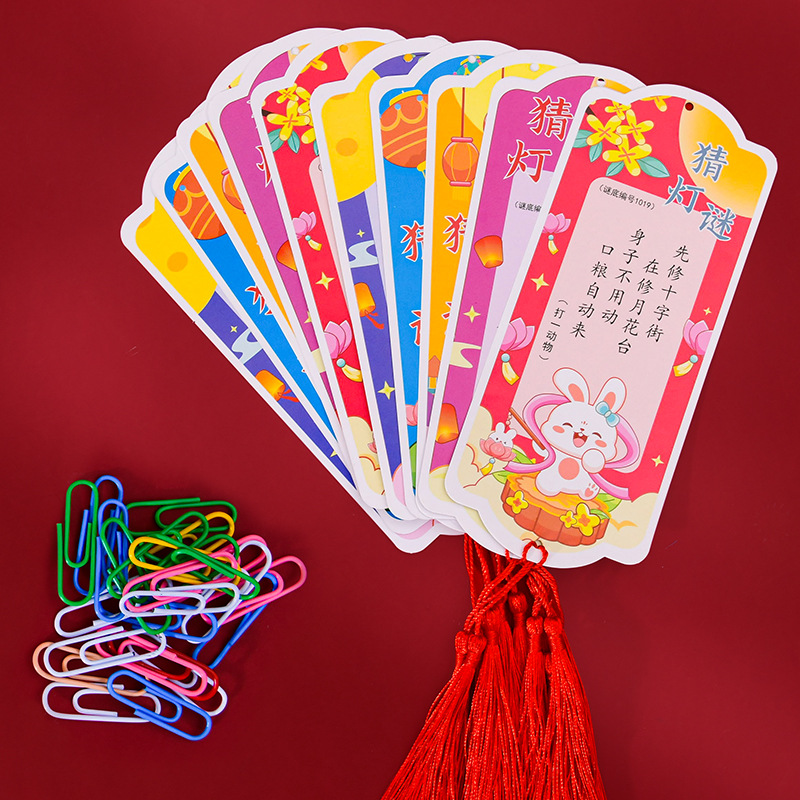 新款猜灯谜卡片中秋节国庆装饰纸灯笼灯谜条挂牌游园猜字谜语吊卡
