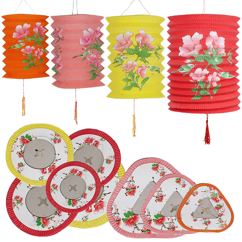 中秋節の装飾伝統的なオルガン折りたたみ提灯花と草漫画子供用ポータブル LED 発光小さな提灯
