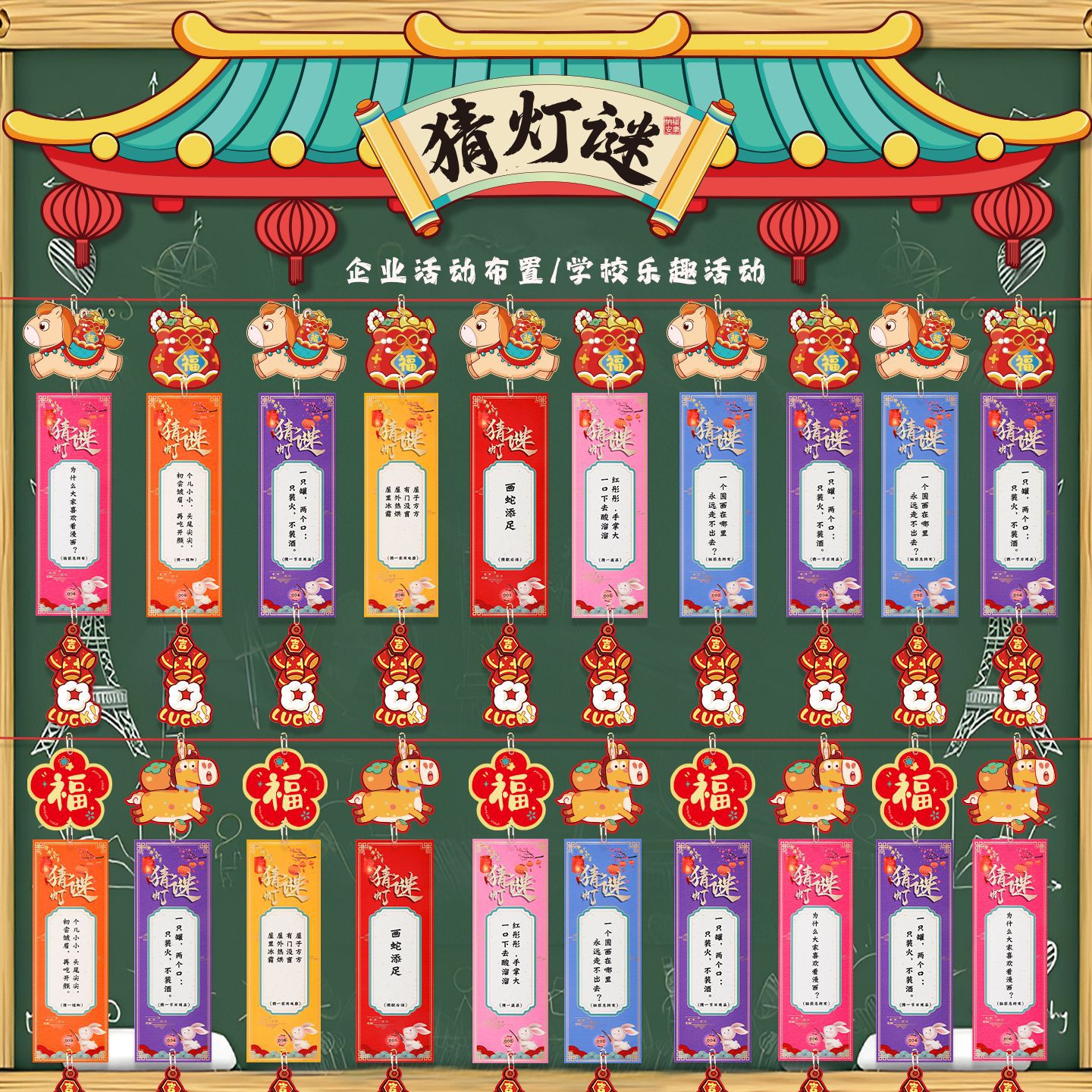 元宵猜灯谜空白卡片谜语字条字谜挂饰学校商场景区年会场景布置