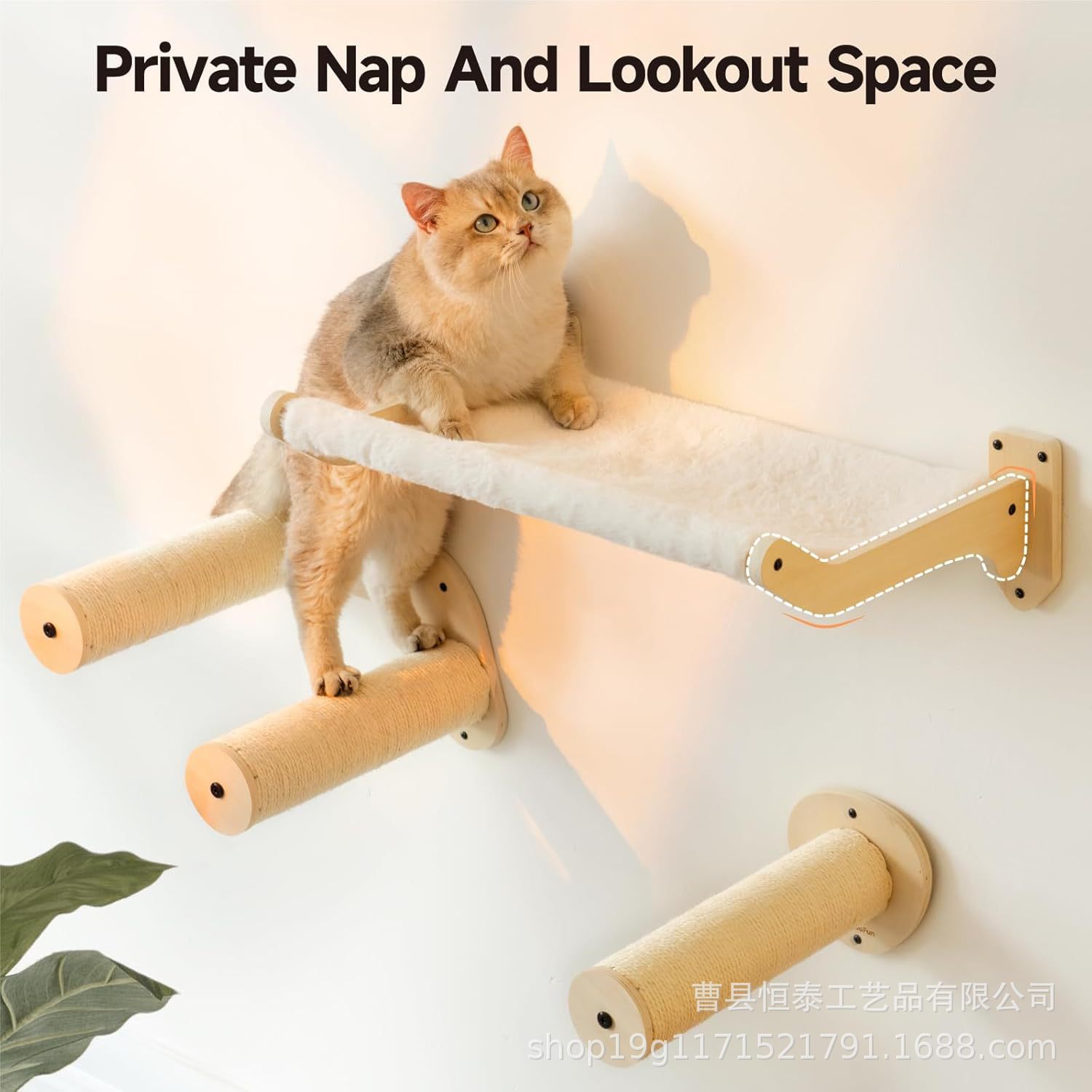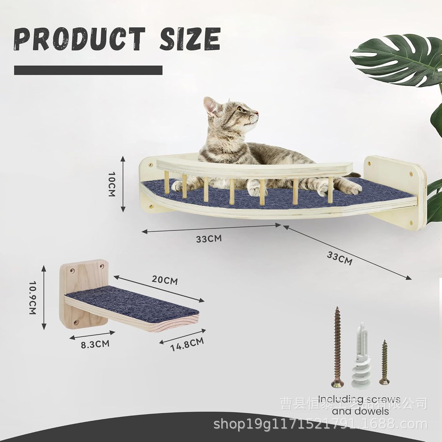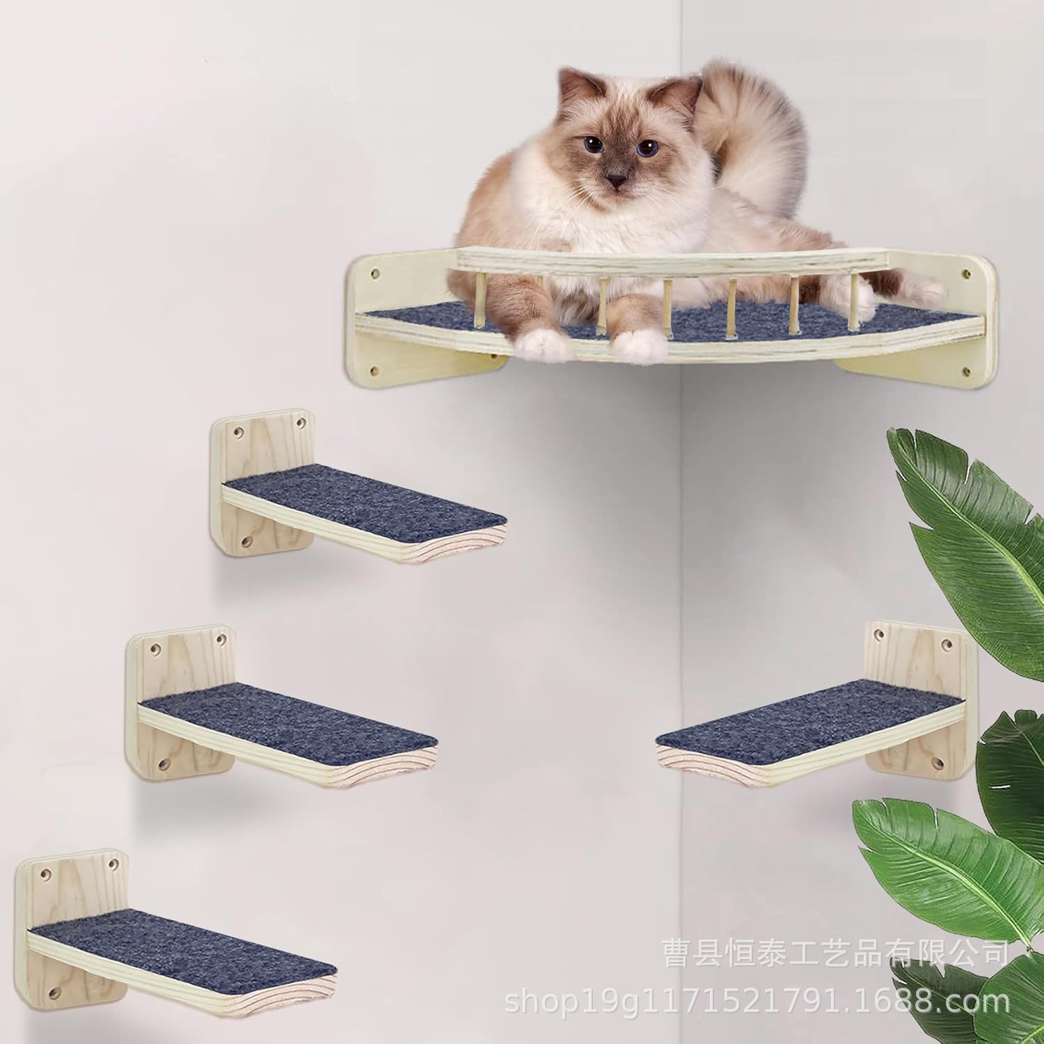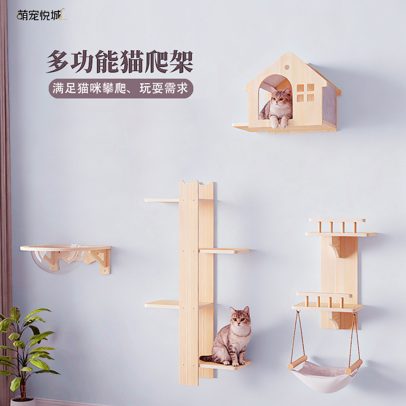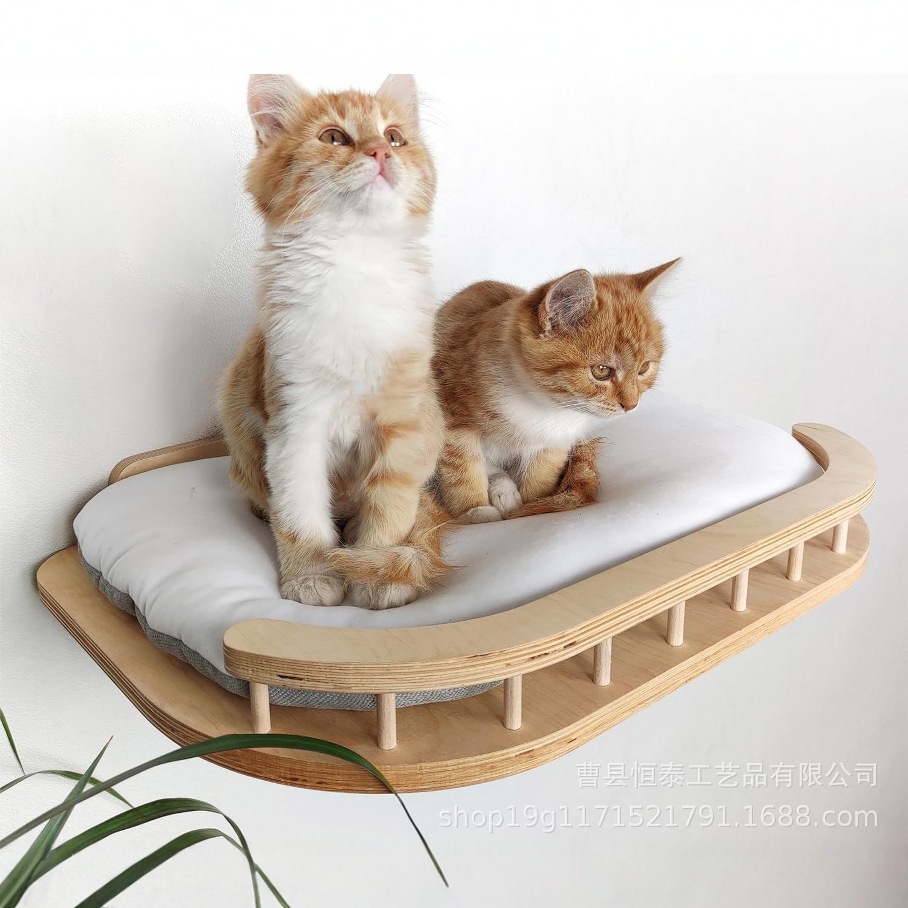 现货4件套木质墙上猫爬架猫壁架猫吊床壁挂架猫咪栖息架木质猫床