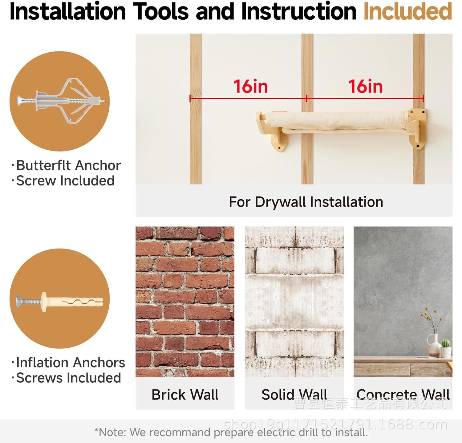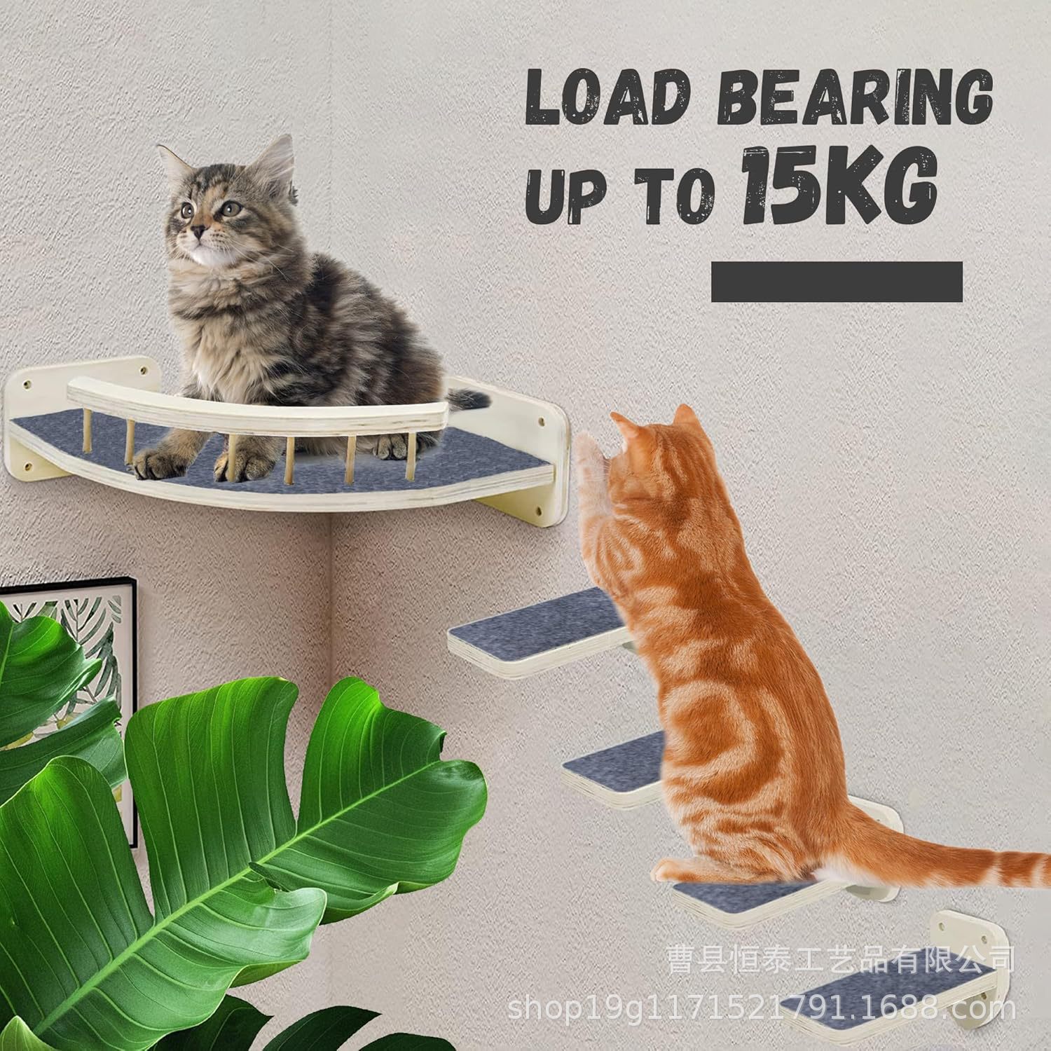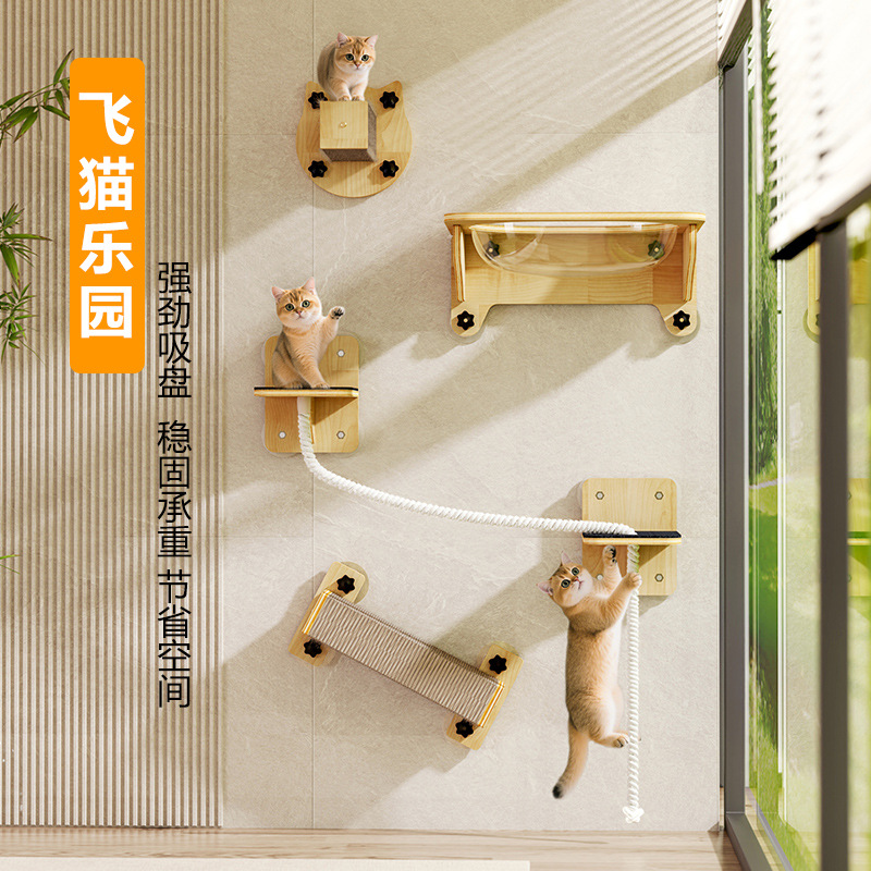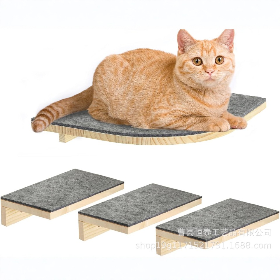 现货4件套木质墙上猫爬架猫壁架猫吊床壁挂架猫咪栖息架木质猫床