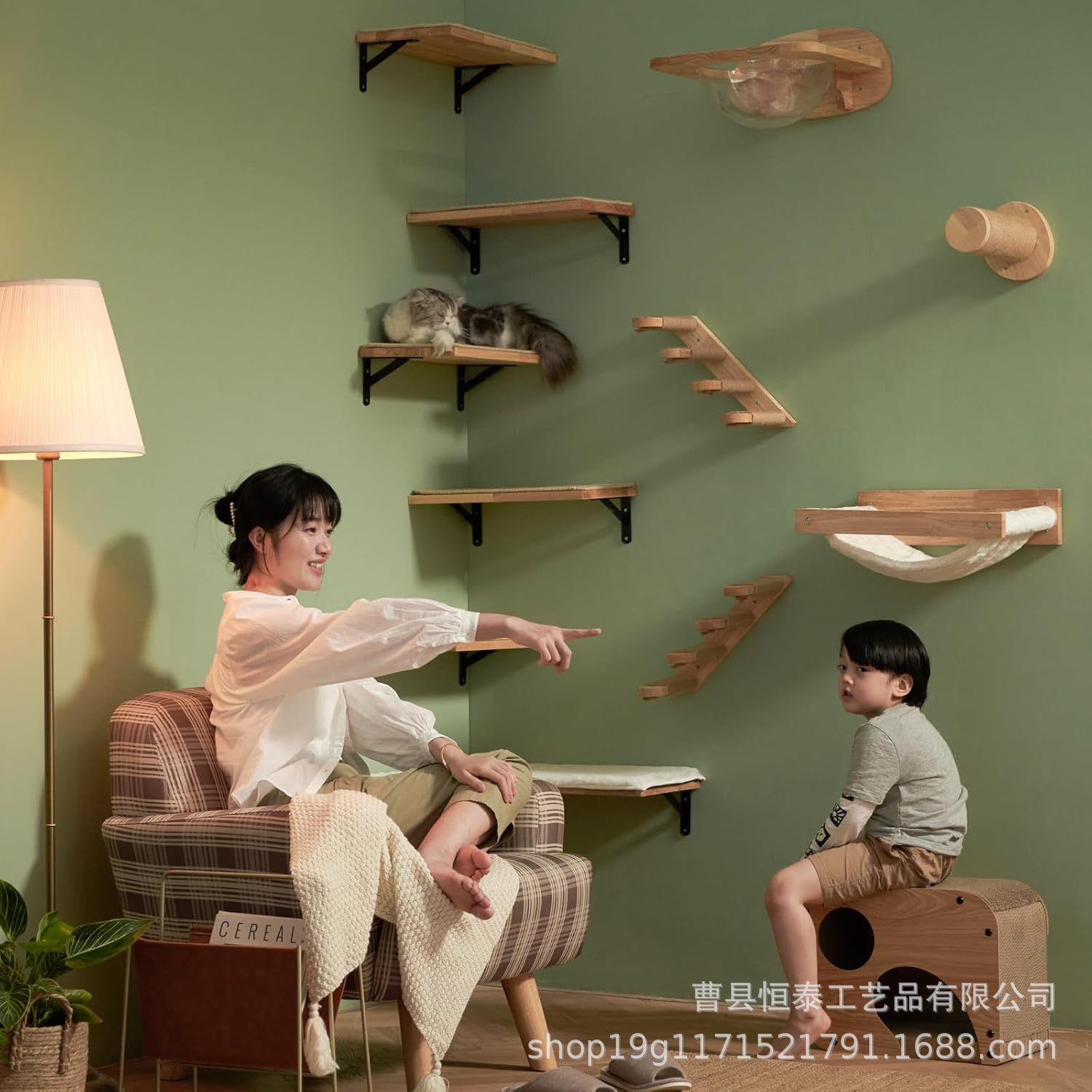 猫クライミングフレーム無垢材壁掛け猫の巣壁掛け猫ジャンプ台コーナー猫ハンモック壁猫観光踏み台ハンモック