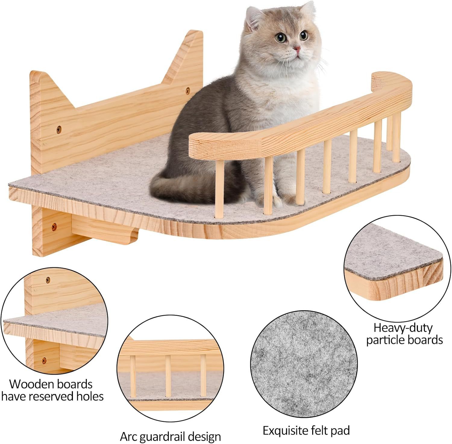 木製猫用爪とぎ、猫用壁掛けキャットタワー、ペット用壁掛け休憩場所、給餌台、壁掛けジャンプ台、猫用寝板