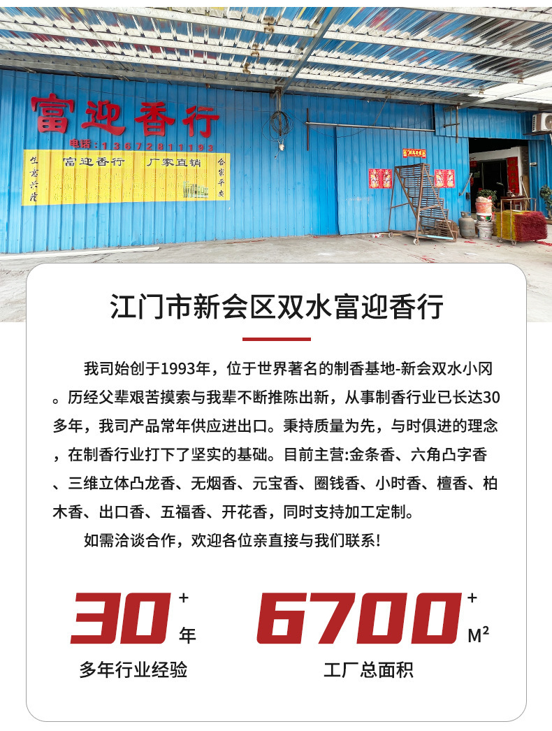 五路財神 50cm 15mm 江門香業卸売 寺院用高級線香 龍香 普通線香 仏香 両面金箔押し