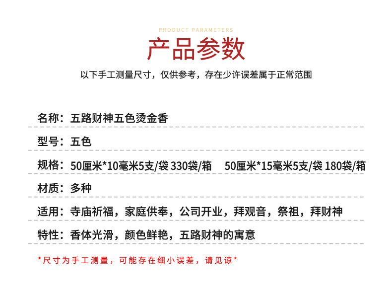 五路財神香五色香金上金条香双箔押し金香50センチ * 10ミリ15ミリ5本装供