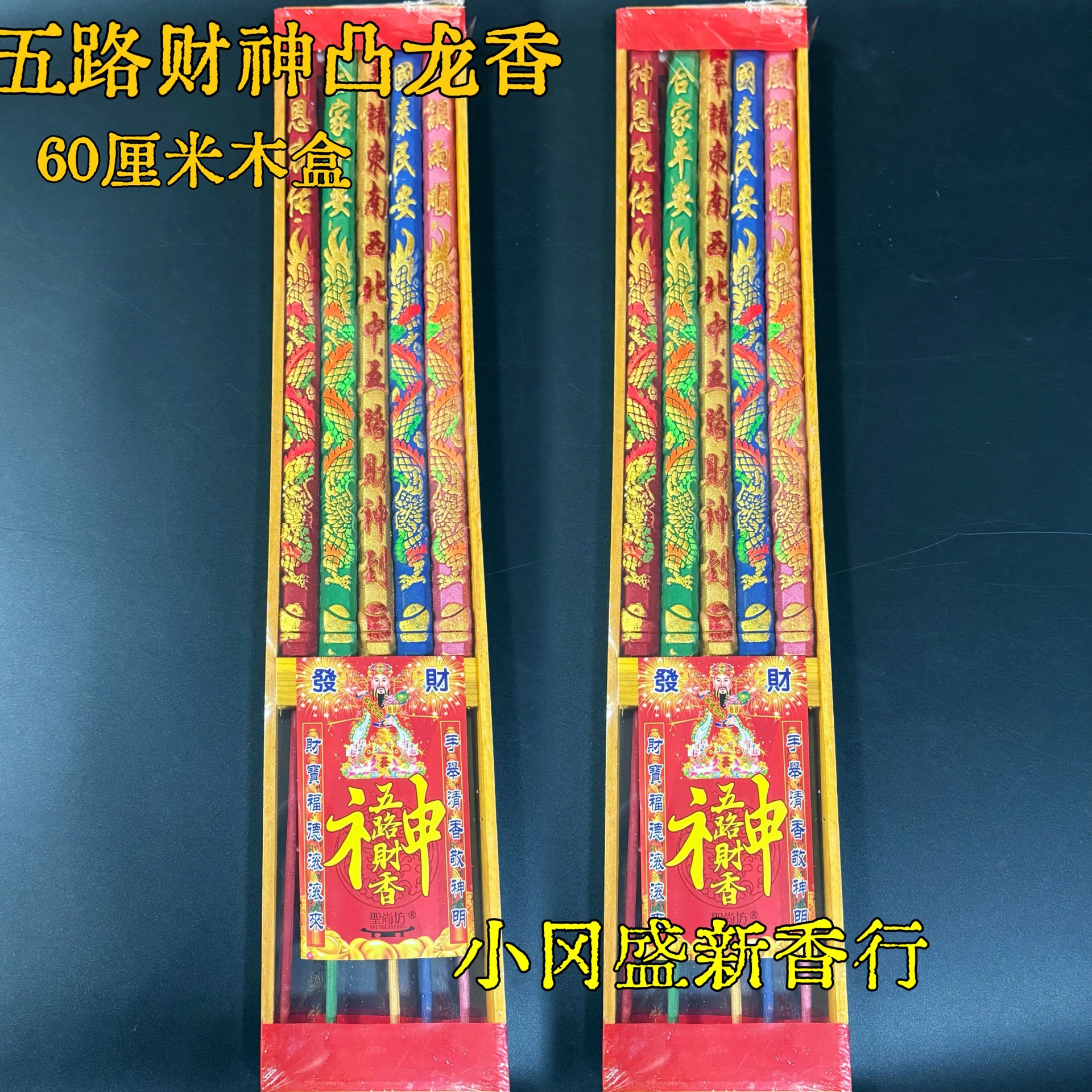 佛香批发五路财神香五色香越南龙香高香棒香60厘米5支木盒财神香